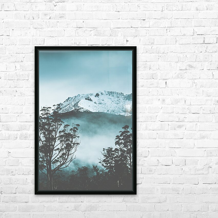 Dramatic dark blue mountain with snow and fog Picture Frame Printing