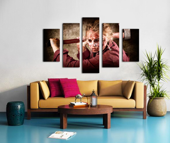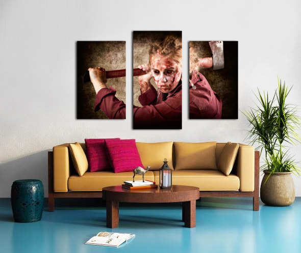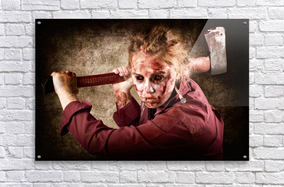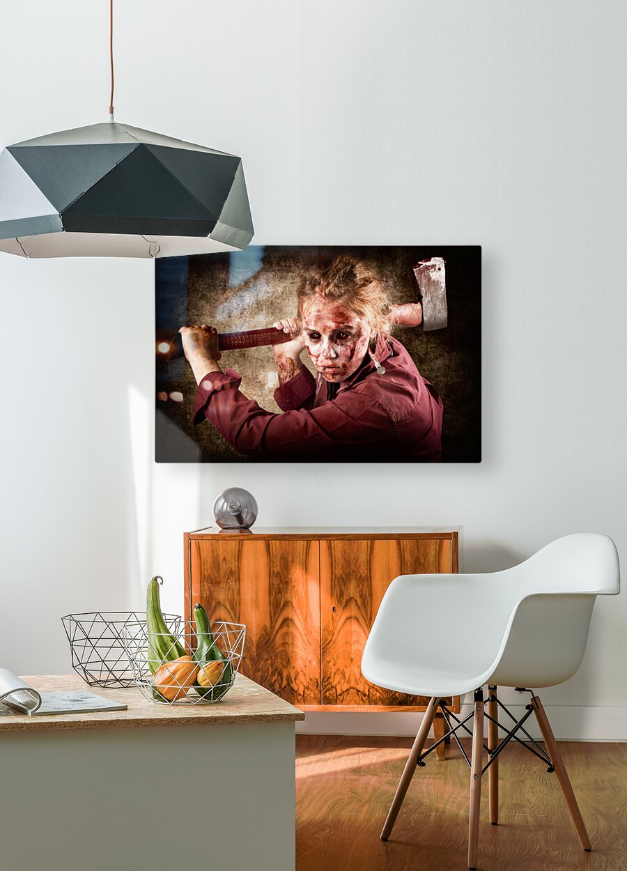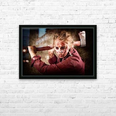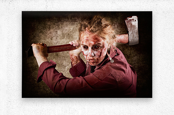 Get this artwork "Sinister zombie axe murderer. A grunge death" in a framed print.