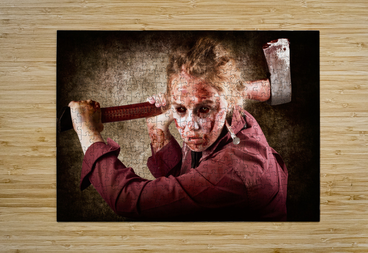 Sinister zombie axe murderer. A grunge death Jorgo Puzzle printing