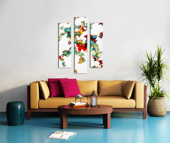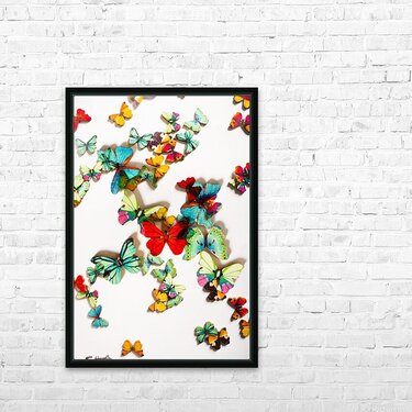 Abstract fine artwork on vibrant spring decorations of creative butterfly compositions. Color pop