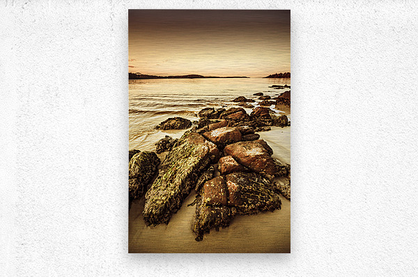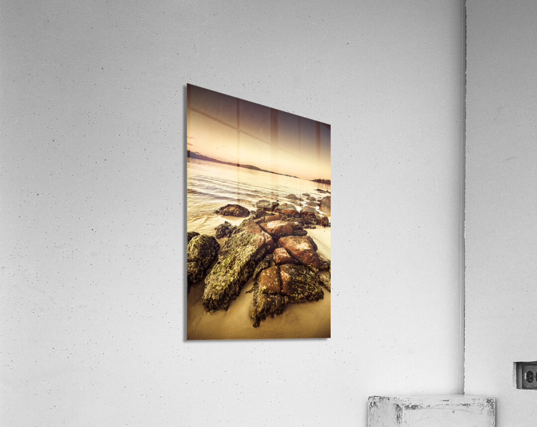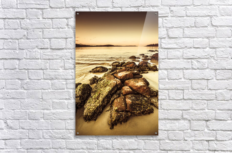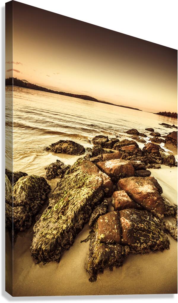 Secluded sandy stones of tranquil Tasmania in a coastal sunset scene. Cockle Creek Australia
