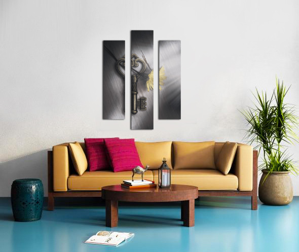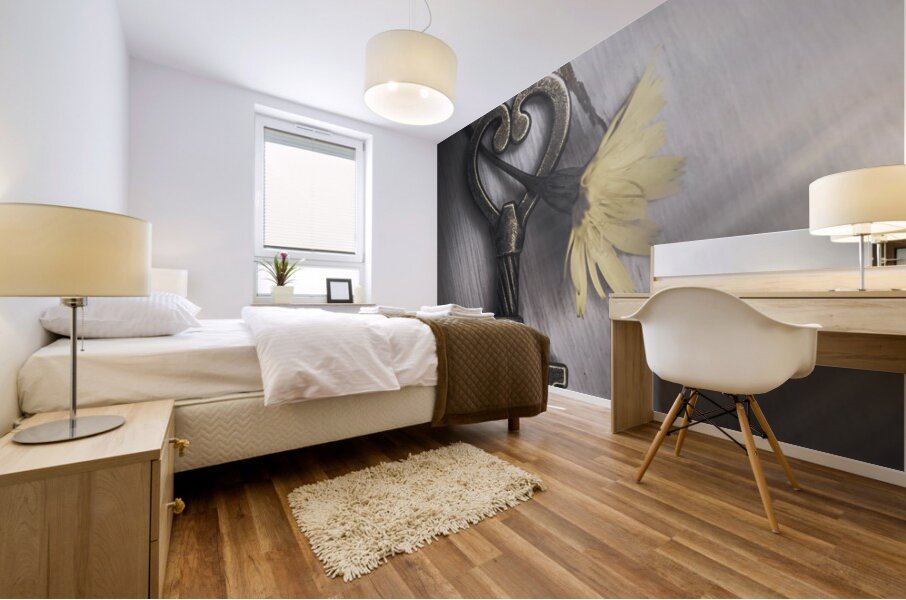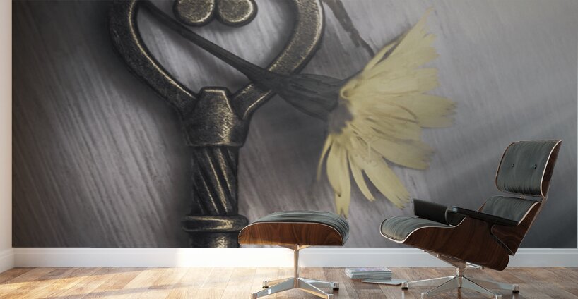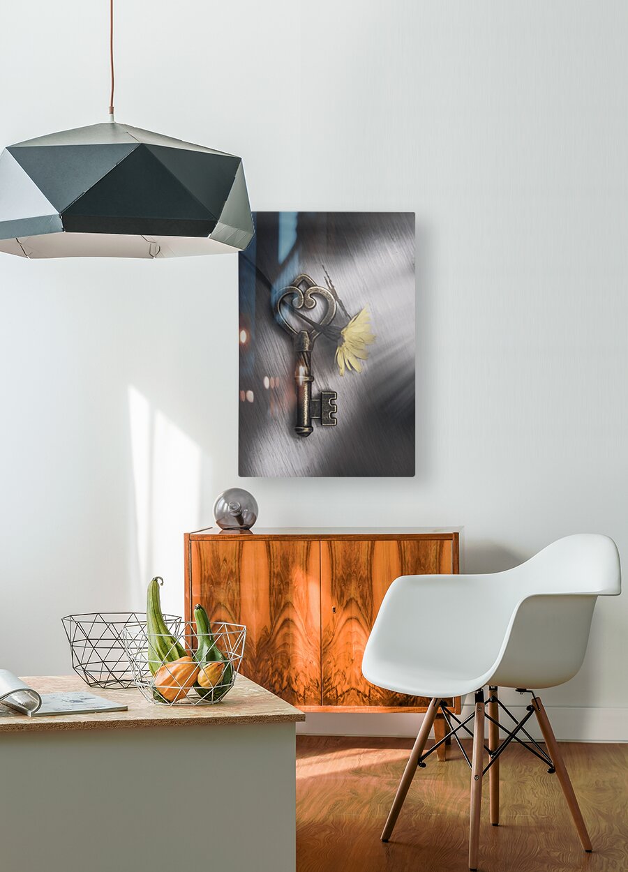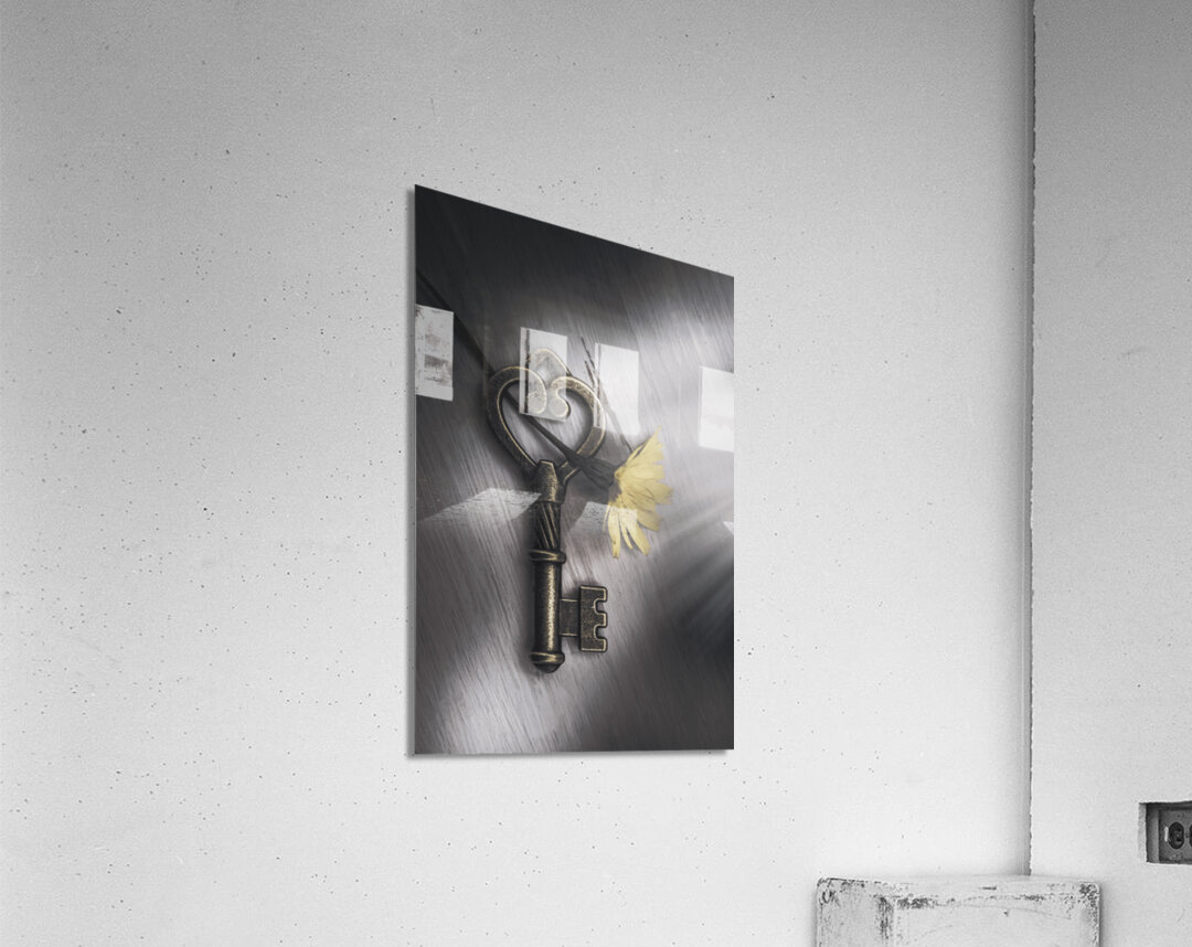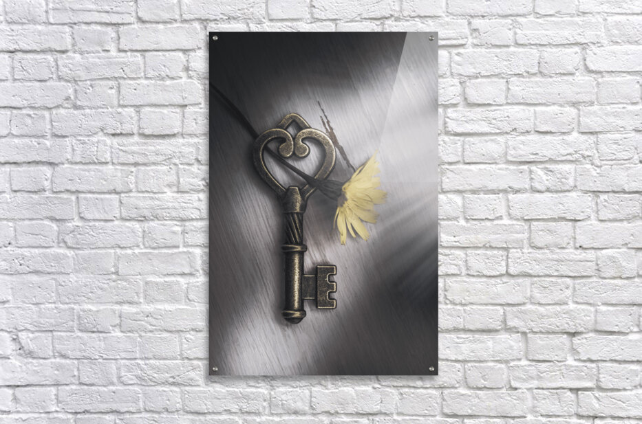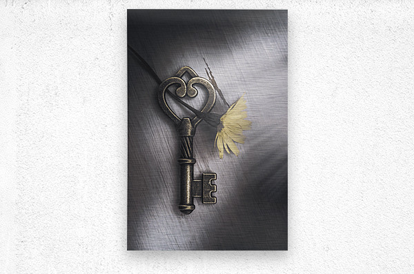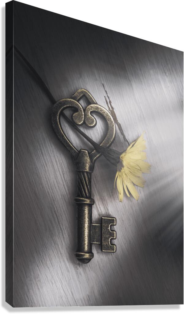 Get this artwork "Heart shaped key with yellow flower" in a framed print.