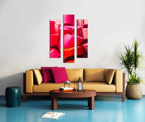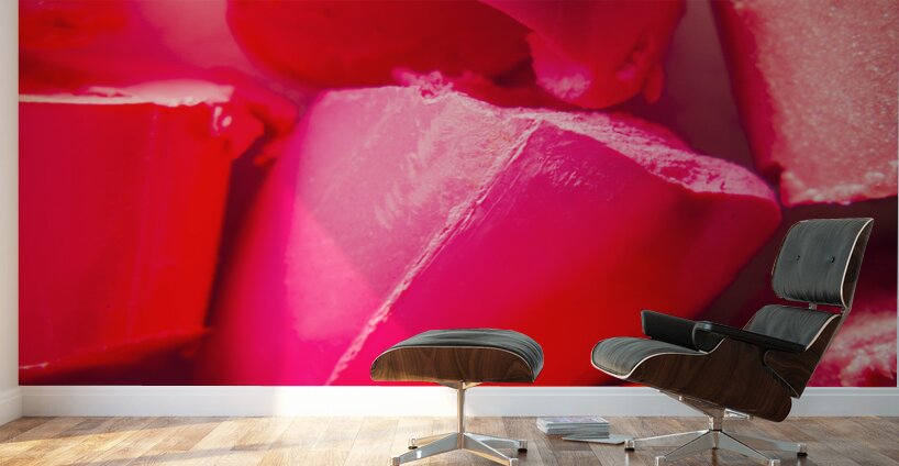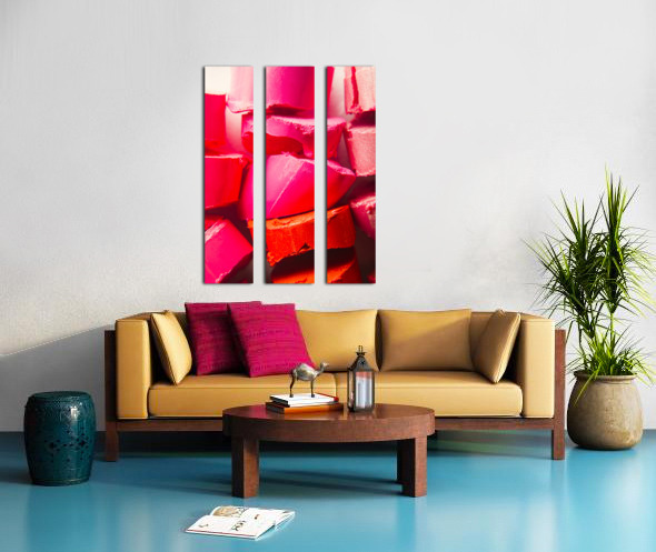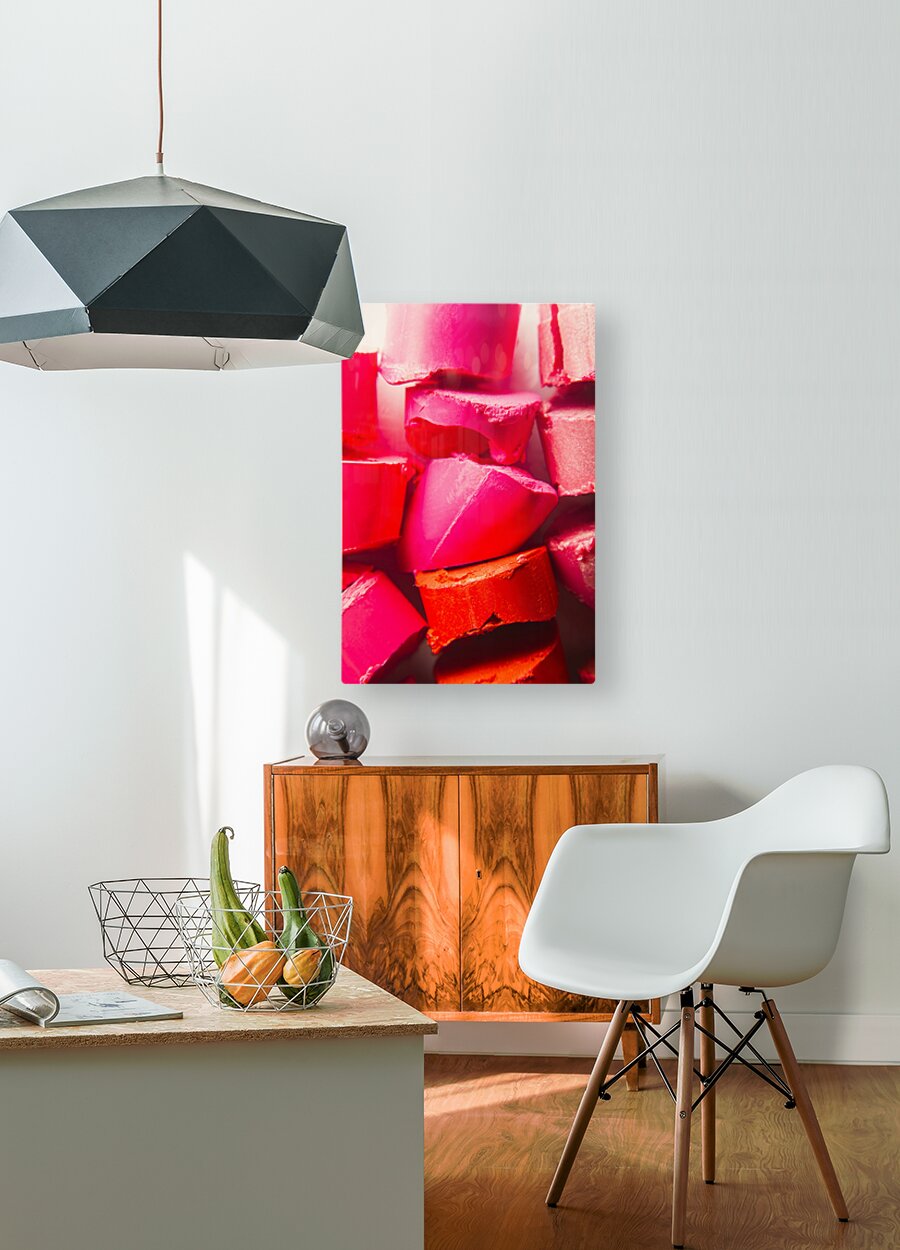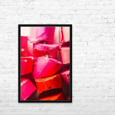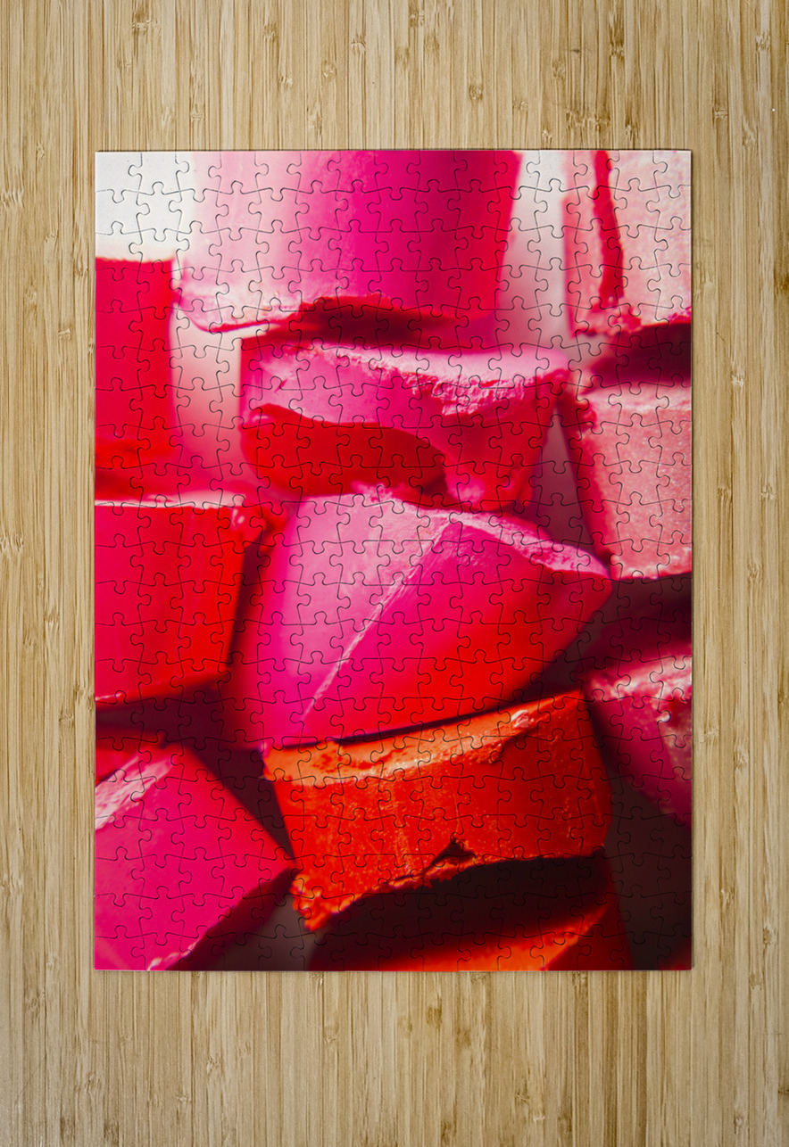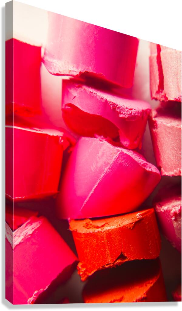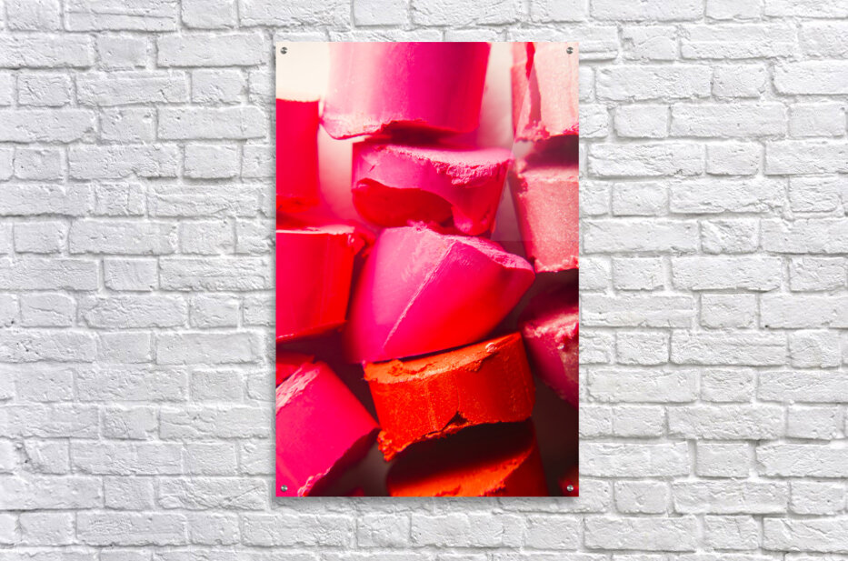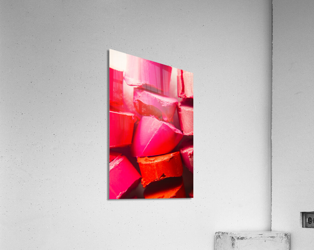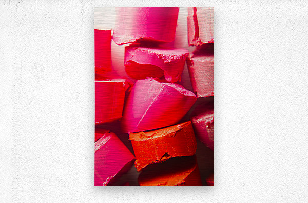 Still-life object art on colorful chunks of lipstick make-up in interesting abstract