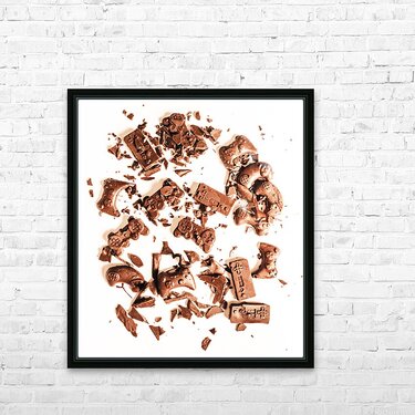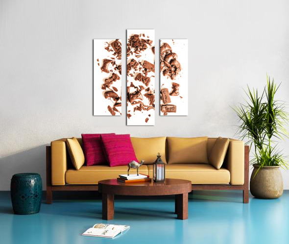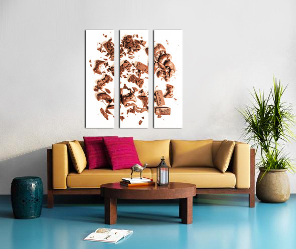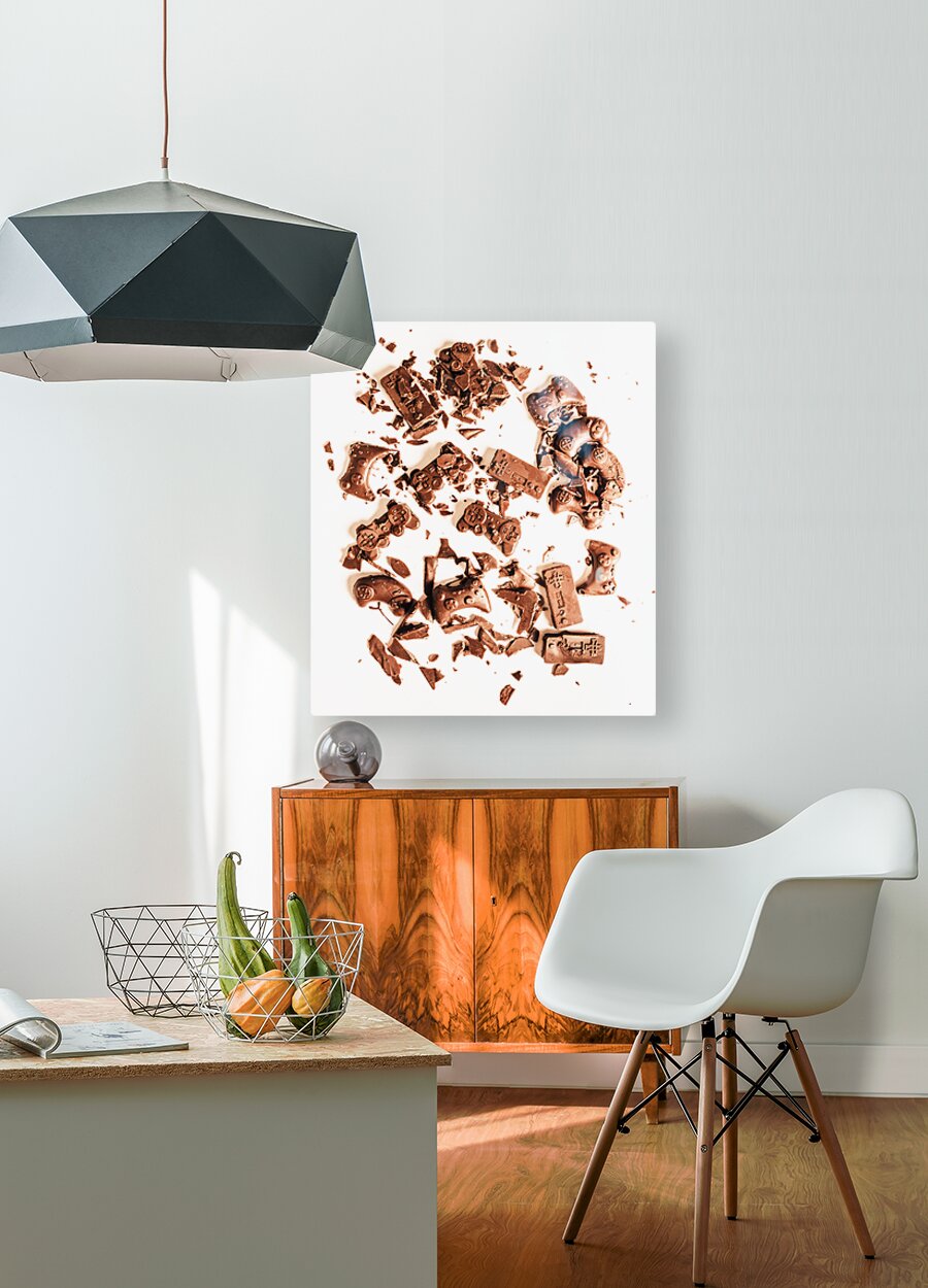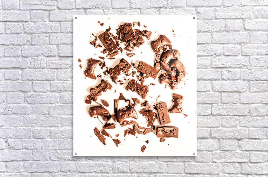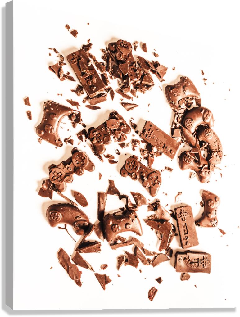 Candy coated display on a played out contest of sweet choc joy sticks in fragmented impact