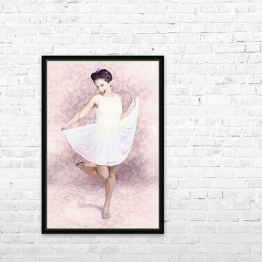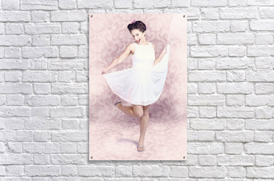 Young beautiful pinup woman dancing in retro dress Picture Frame Printing