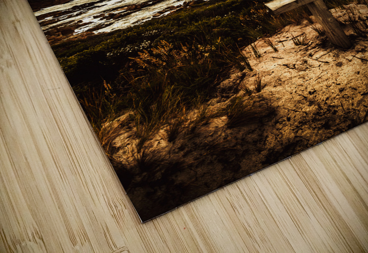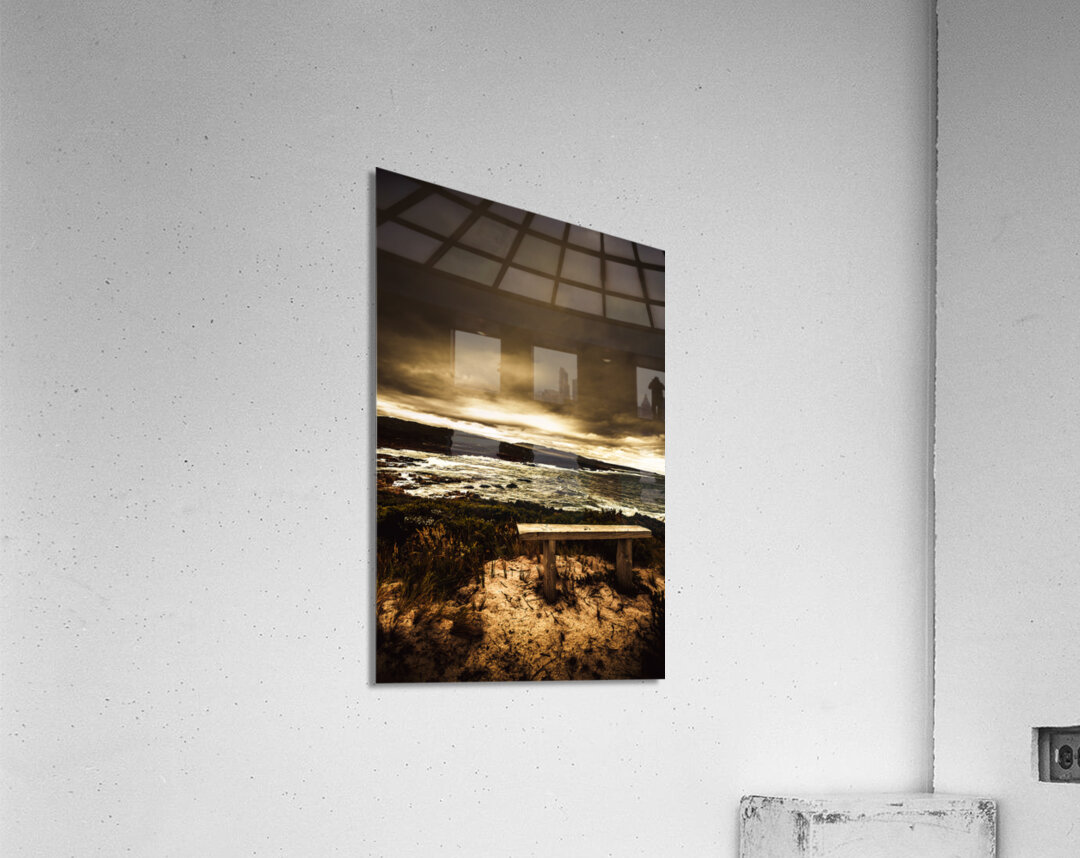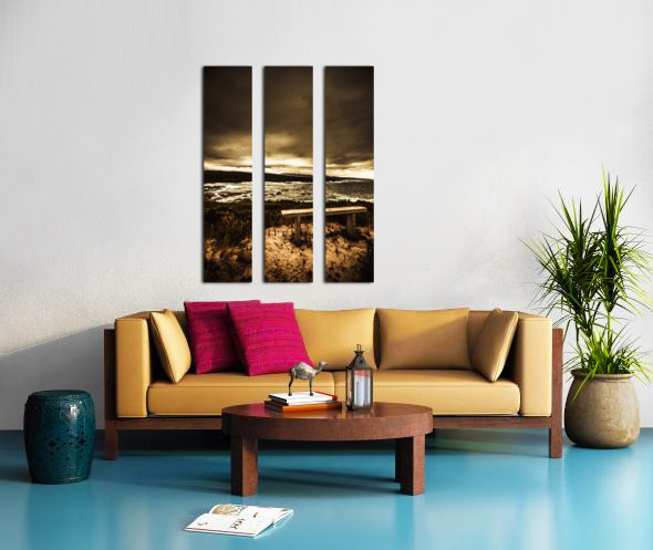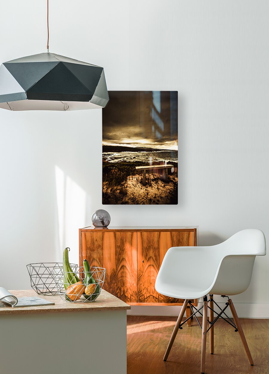 Dramatic fine art landscape on a seat lookout over a dark seascape in west coast Tasmania. Captured Granville Harbour Australia