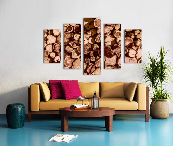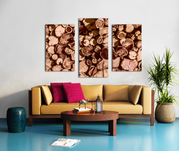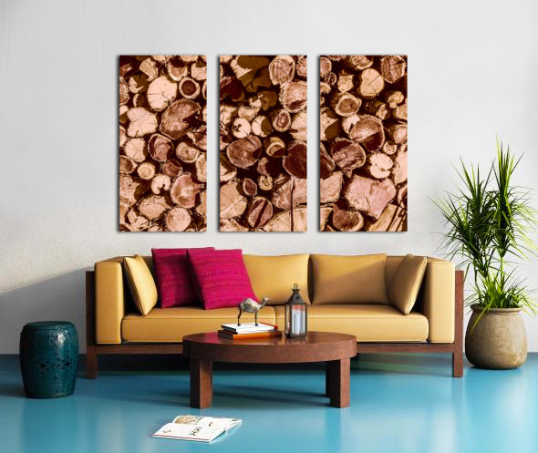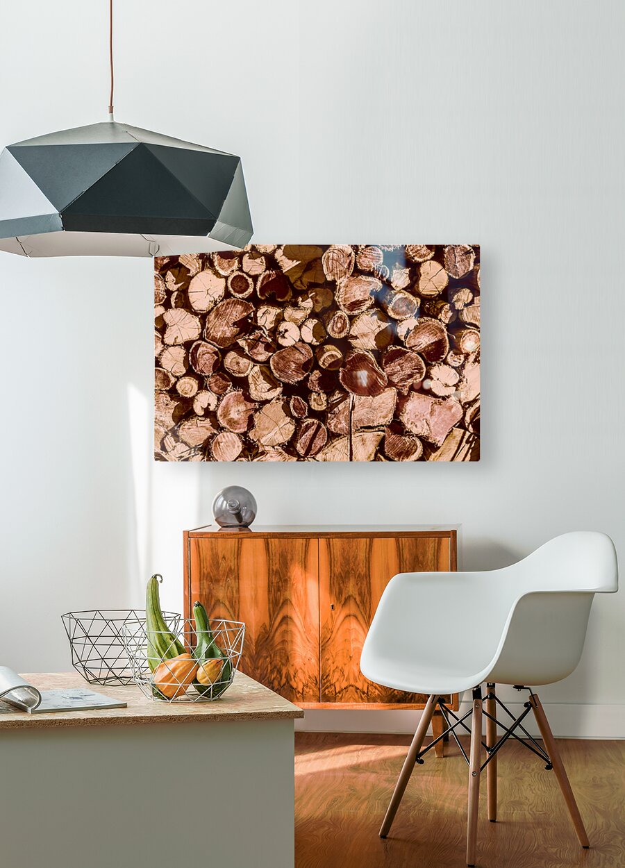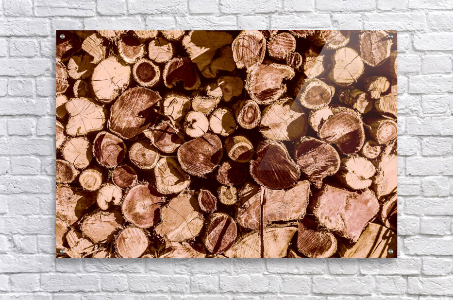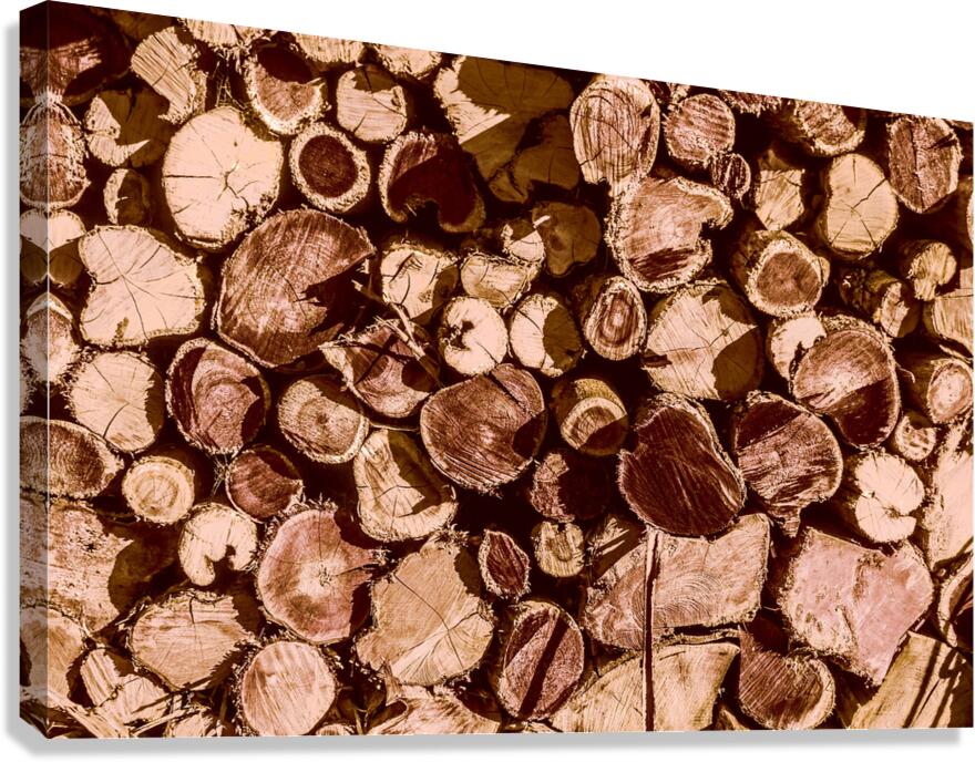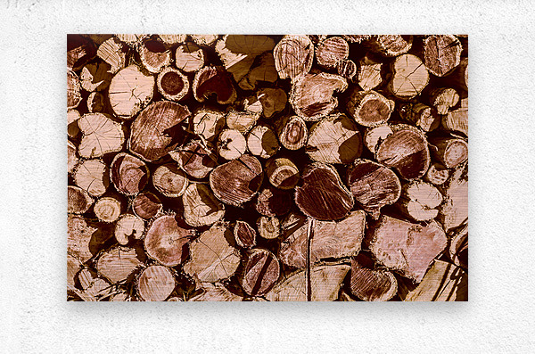 Country styled art on a abstract of wood stacked in rustic tones