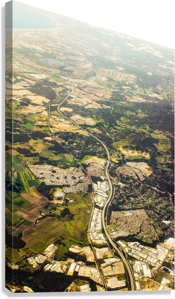 Aerial landscape photo of a major highway running through hinterland and suburbs in the Gold Coast Queensland Australia