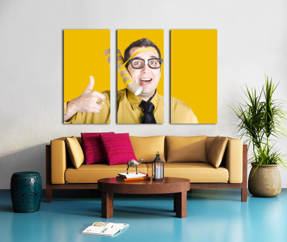 Inventive businessman with new technology Canvas print