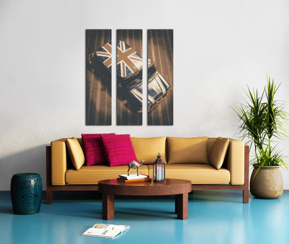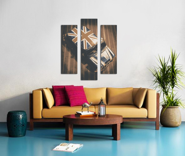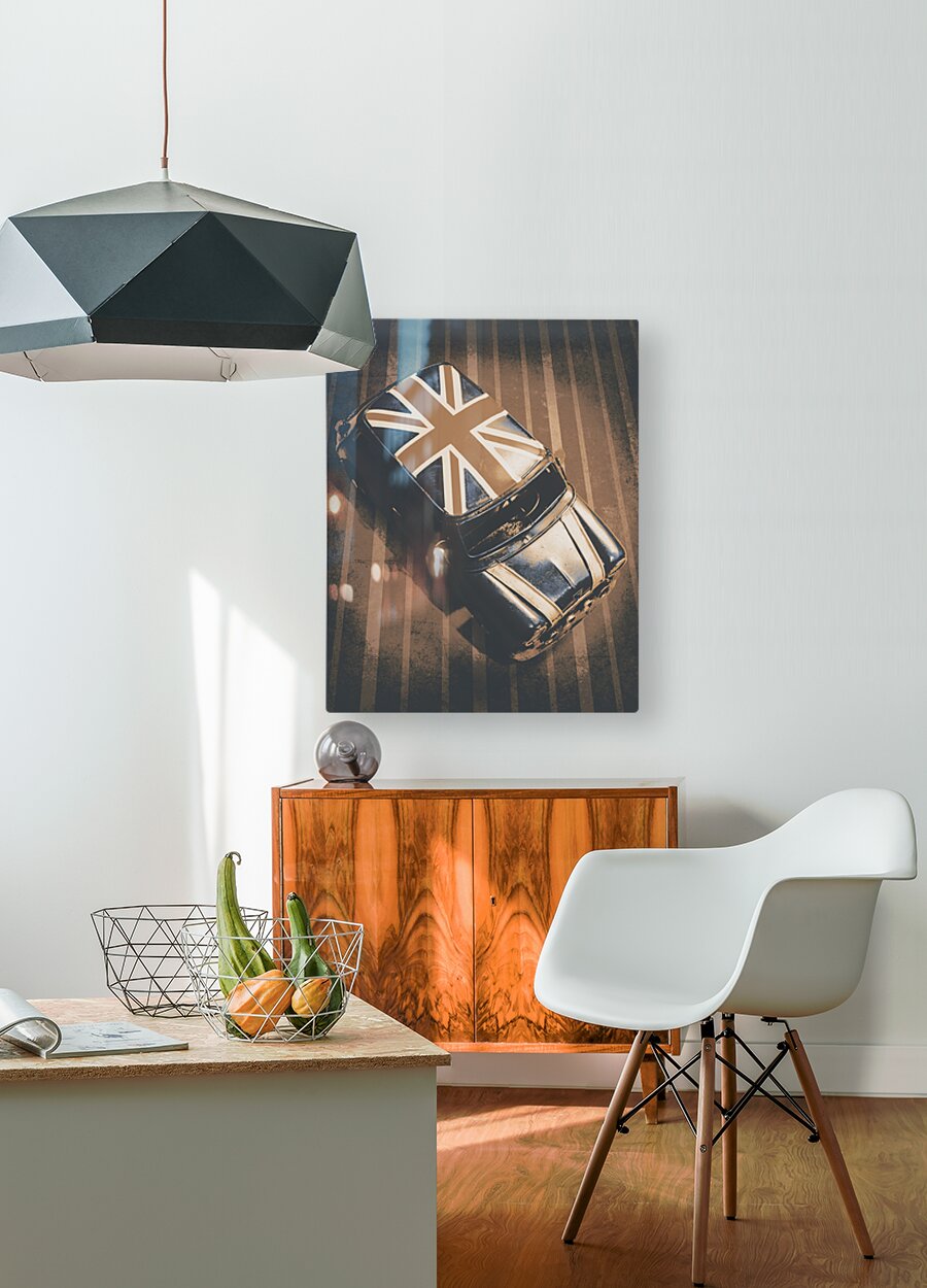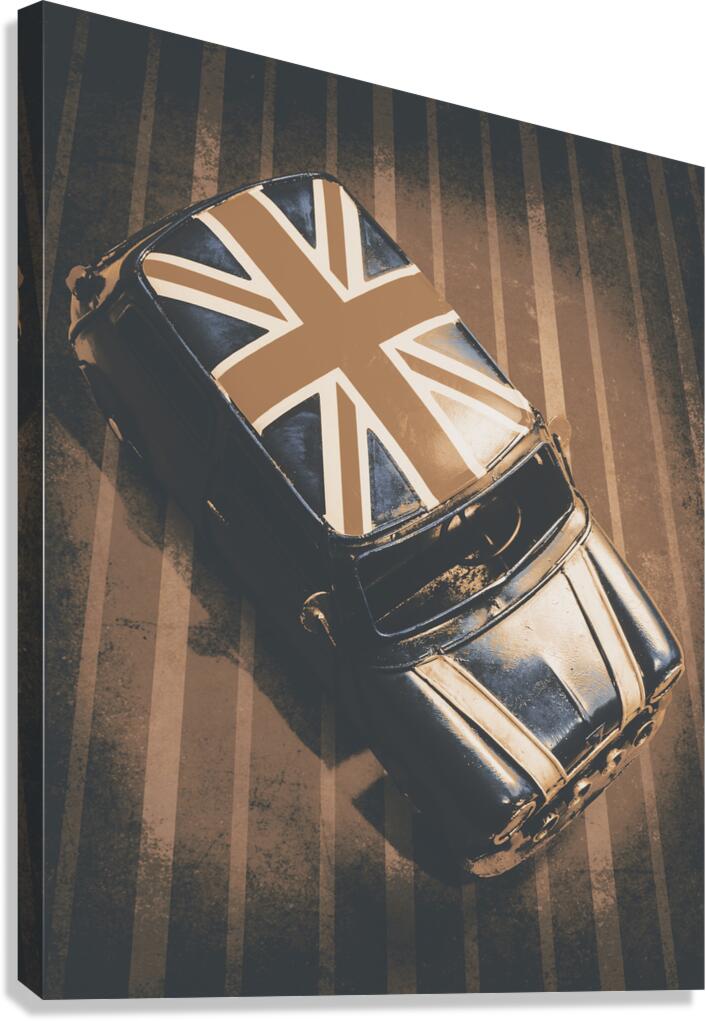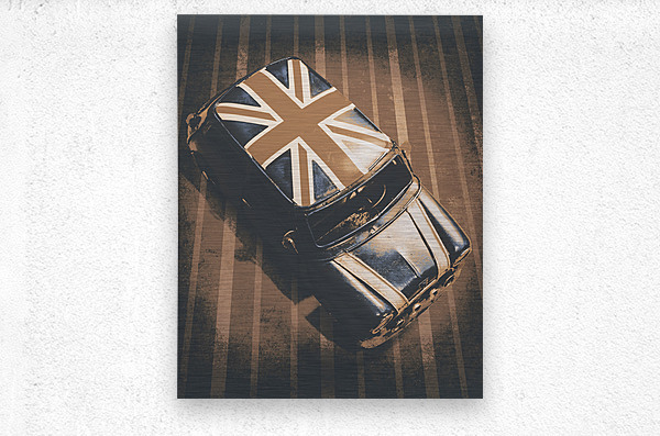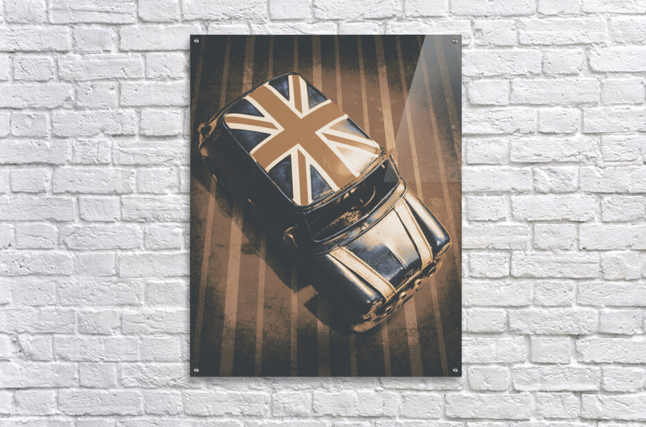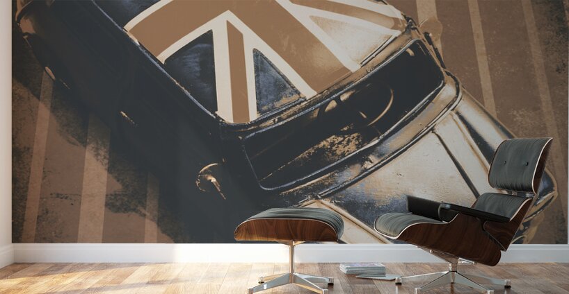 Faded old mini artwork on a prime auto icon from UK nostalgia. Miniature Motors