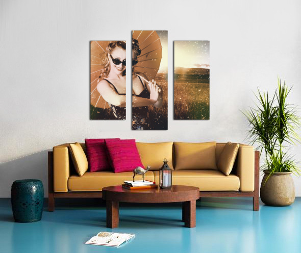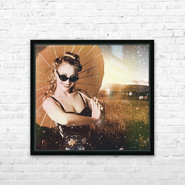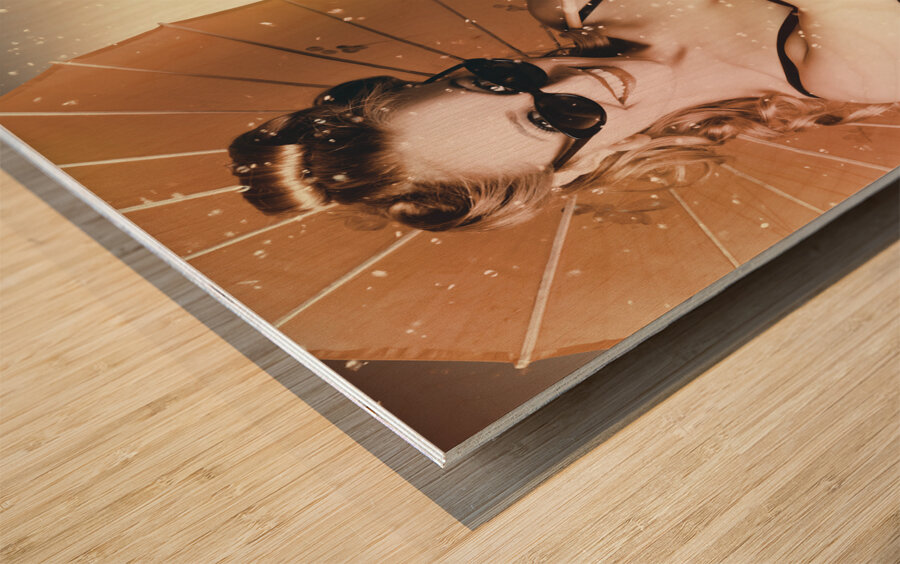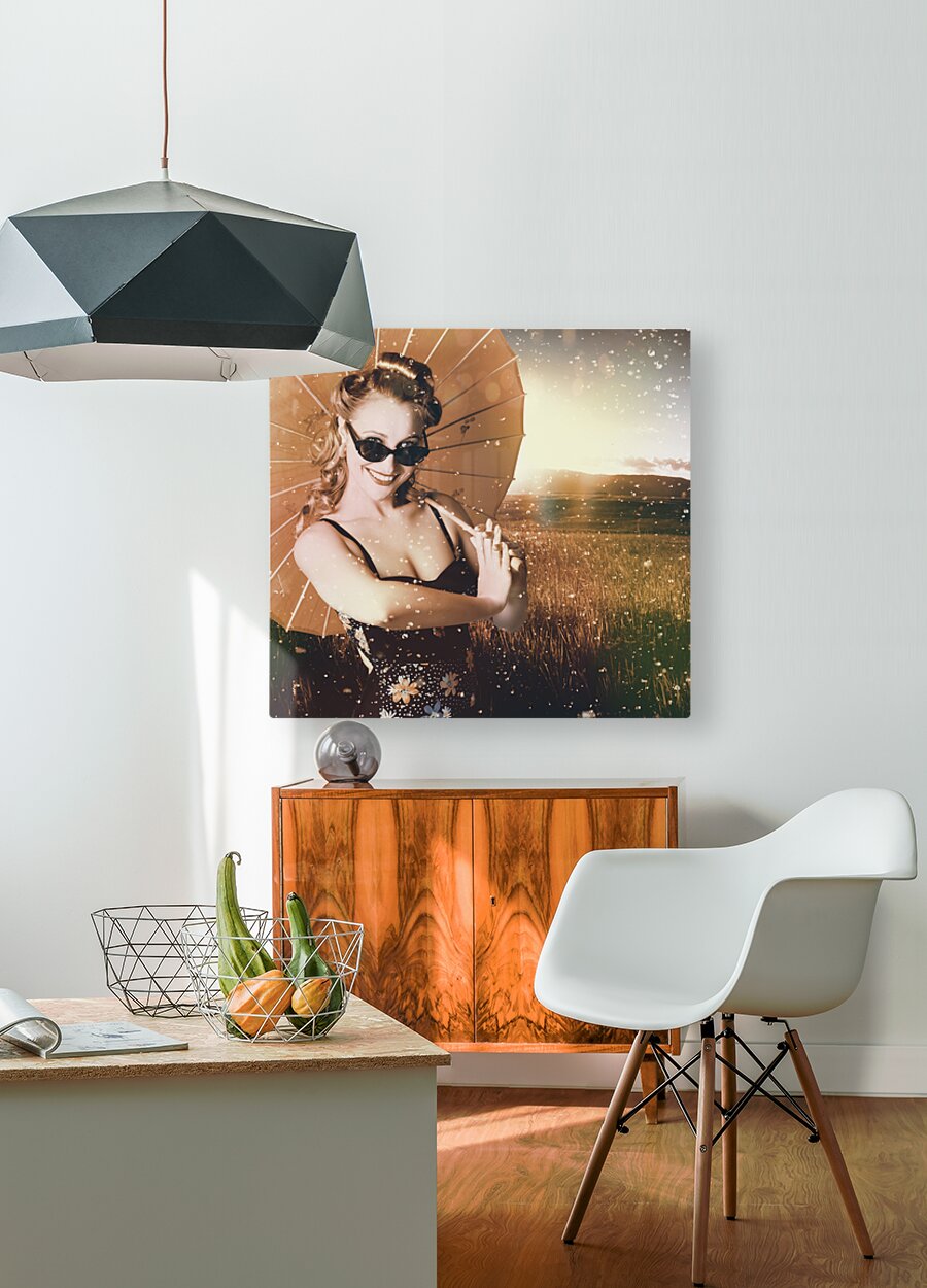 Vintage American pin-up girl in summer rain Picture Frame Printing