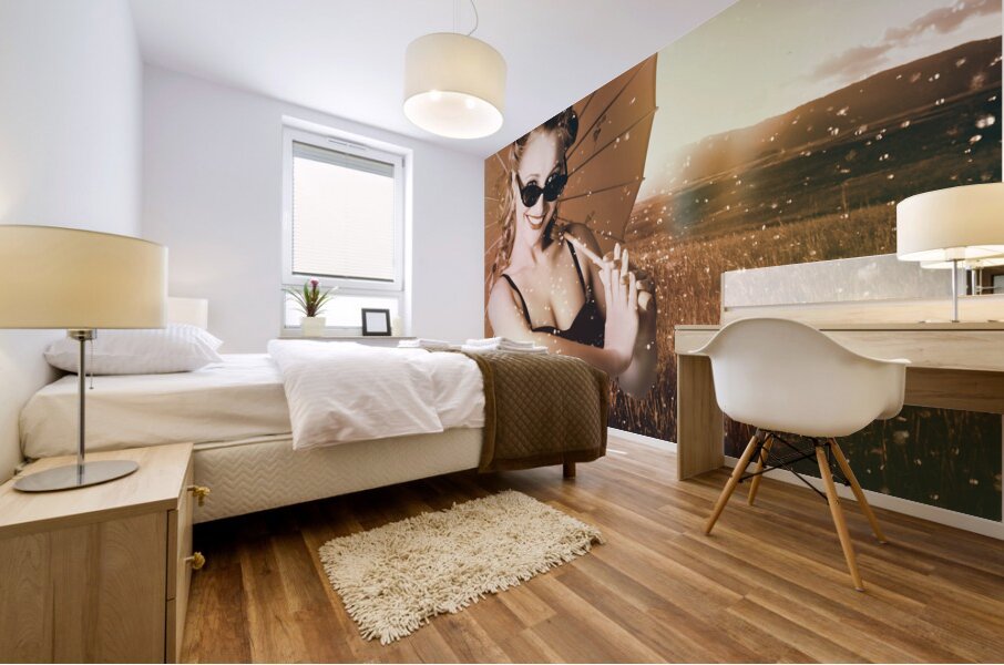 ABOUT THIS ARTWORK: VINTAGE AMERICAN PIN-UP GIRL IN SUMMER RAIN
