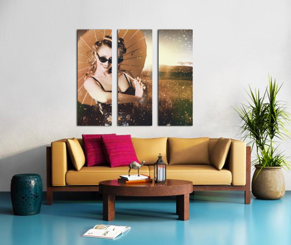Get this artwork "Vintage American pin-up girl in summer rain" in a framed print.
