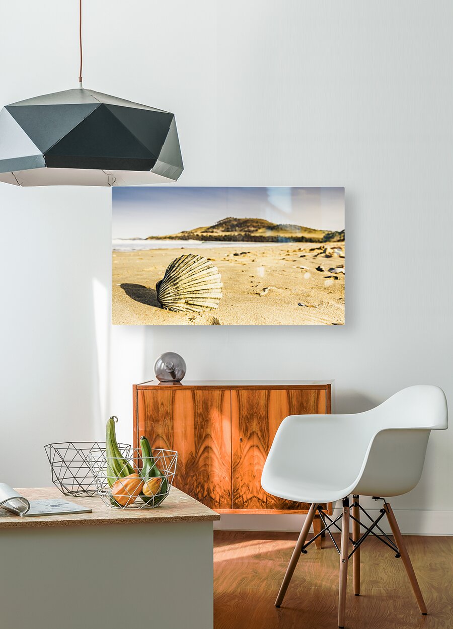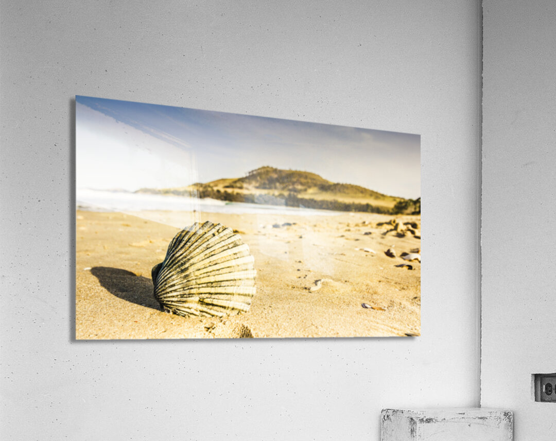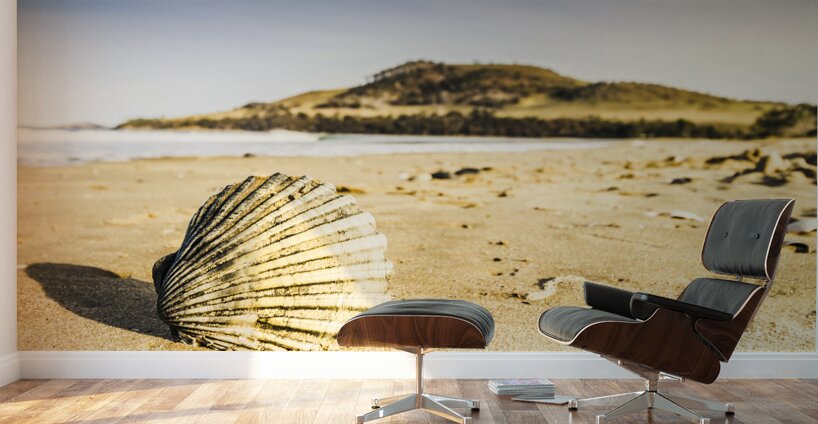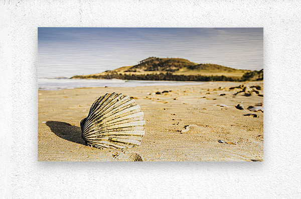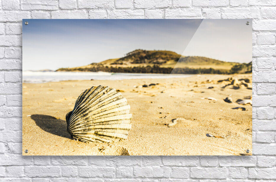 Harmonious low beach landscape of a shell nestled in the sand on a lovely Australian shore. Seven Mile Beach Tasmania