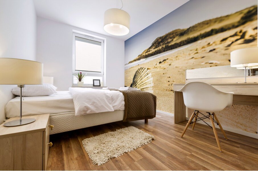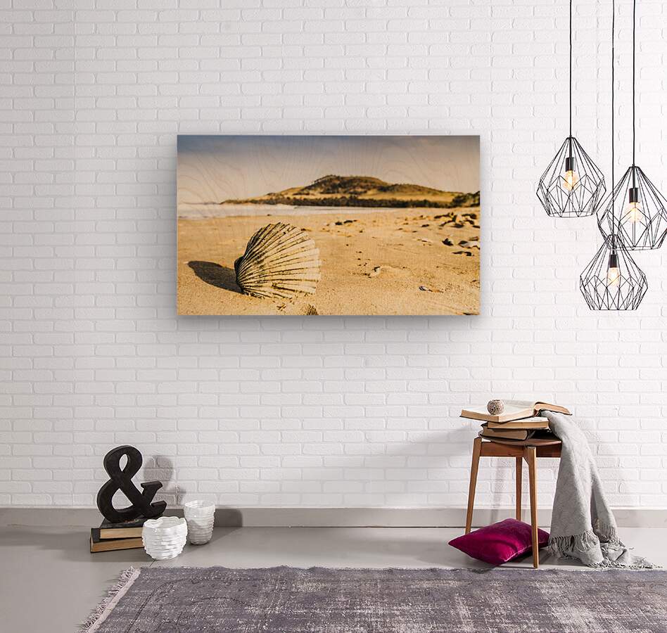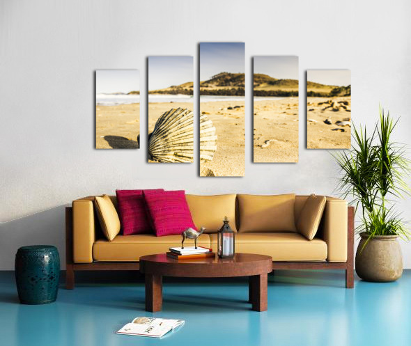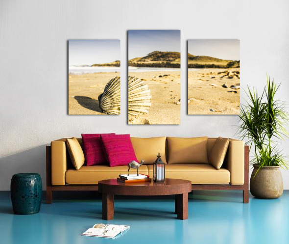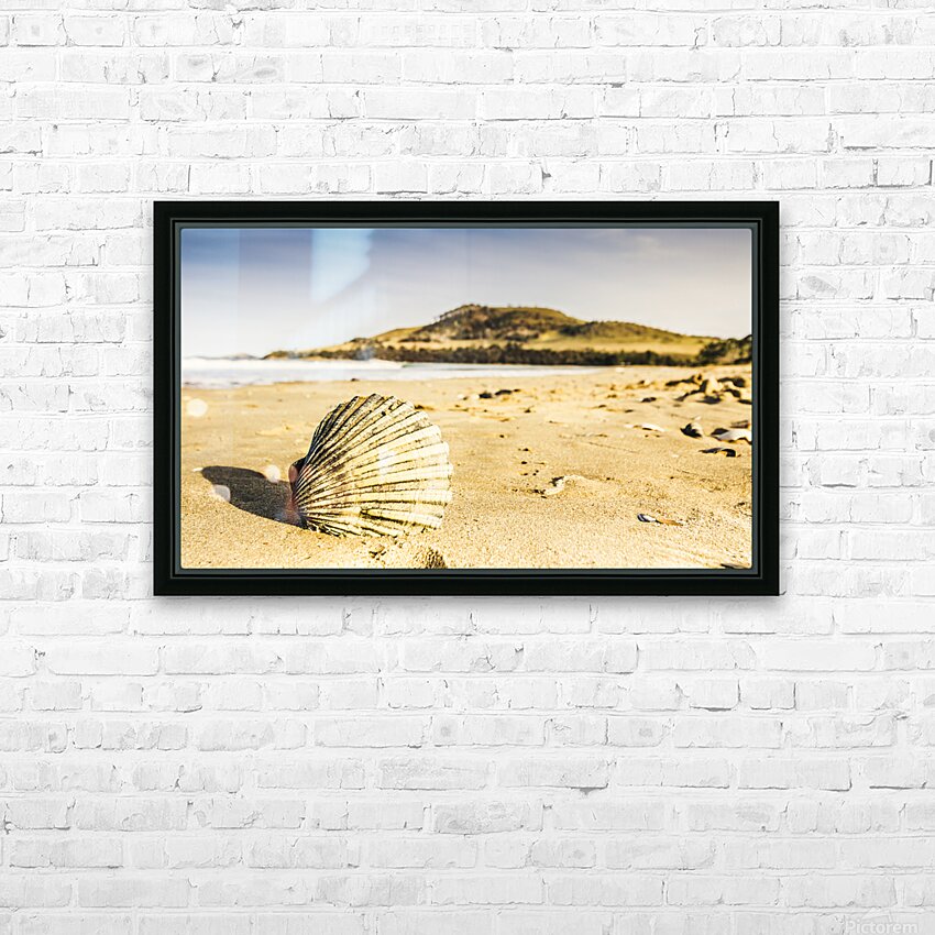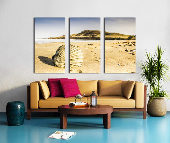 Harmonious low beach landscape of a shell nestled in the sand on a lovely Australian shore. Seven Mile Beach Tasmania