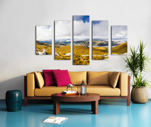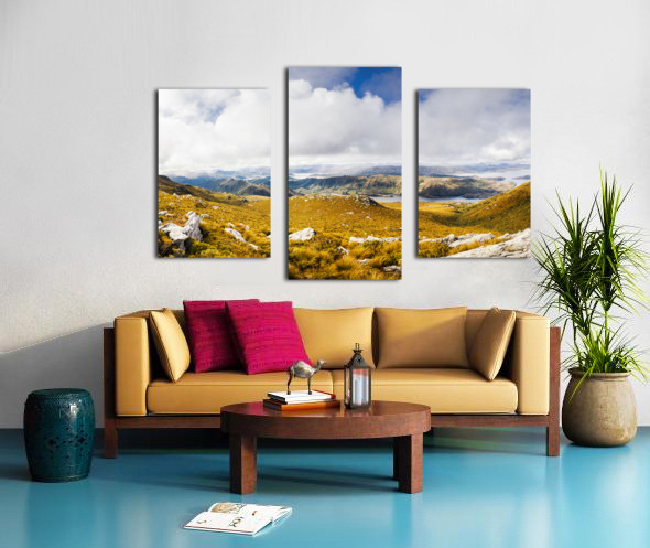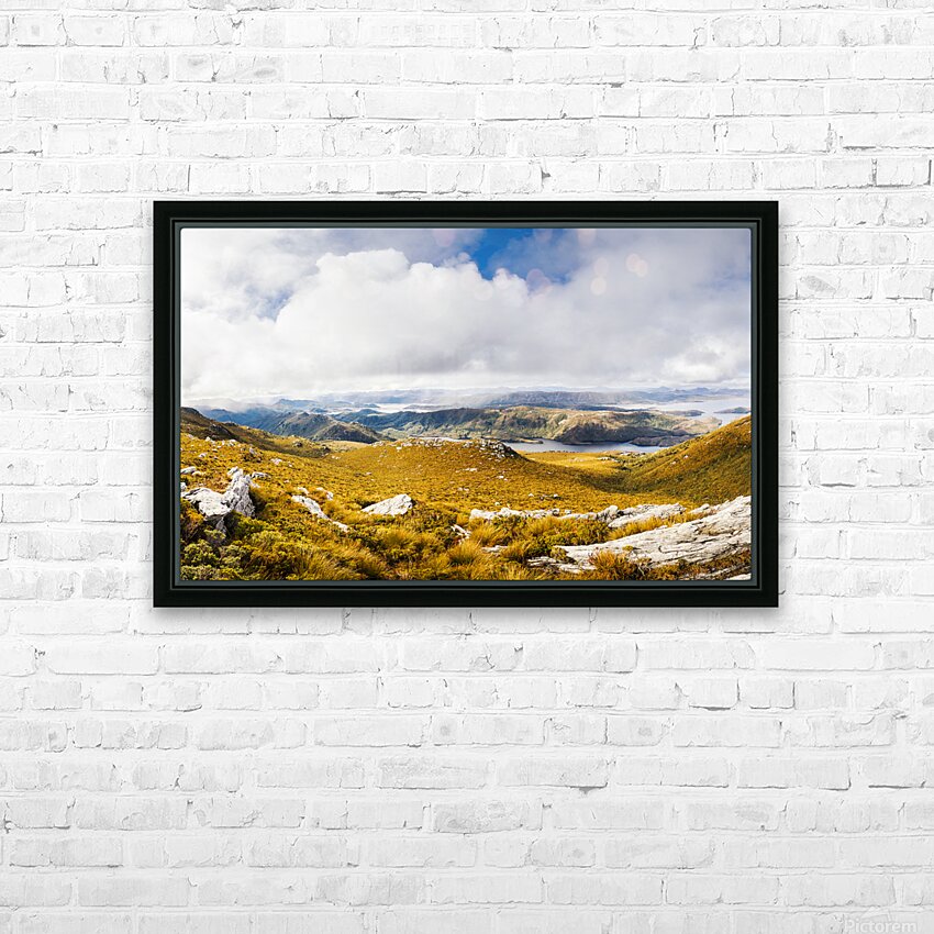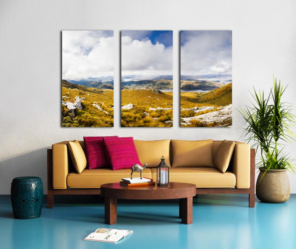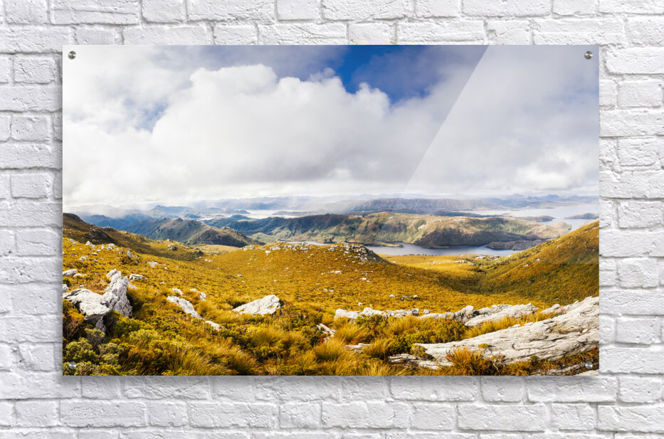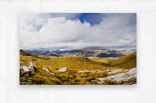 Picturesque natural views on a colourful mountain range with vast expansive views to clouds and valley wonder. Mt Sprent to Serpentine Dam Strathgordon Tasmania Australia
