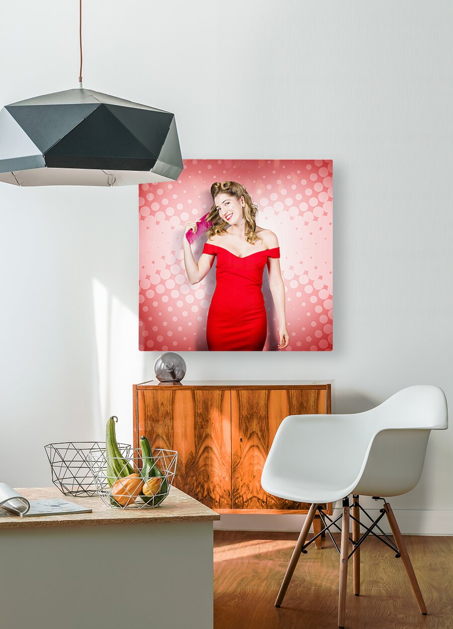 Beauty pinup model straightening rolled 50s hair Wood print