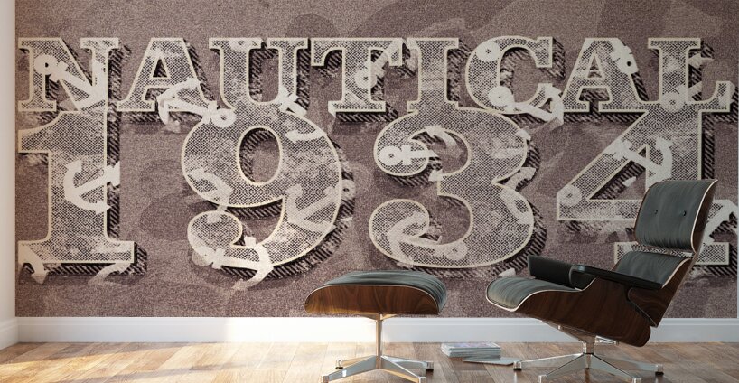 Antique old seafaring decor on a banner announcement of nostalgic anchorage text. Nautical 1934