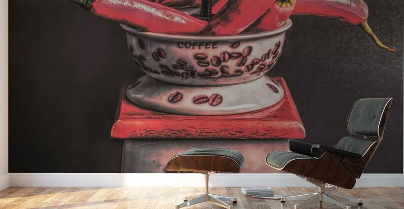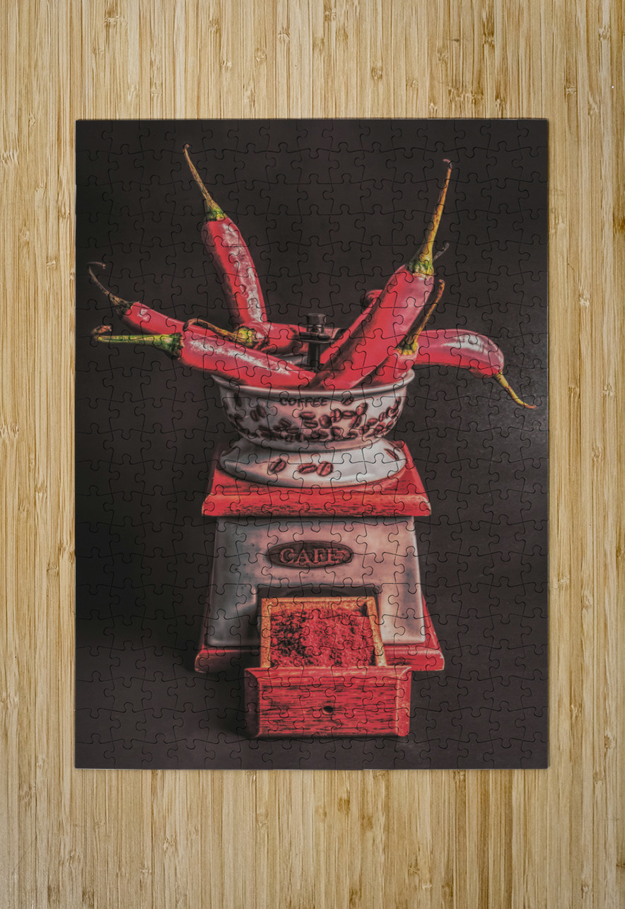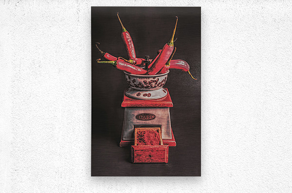 Vintage food photo on a spicy scene of red hot pepper condiments milled in old antiquated style