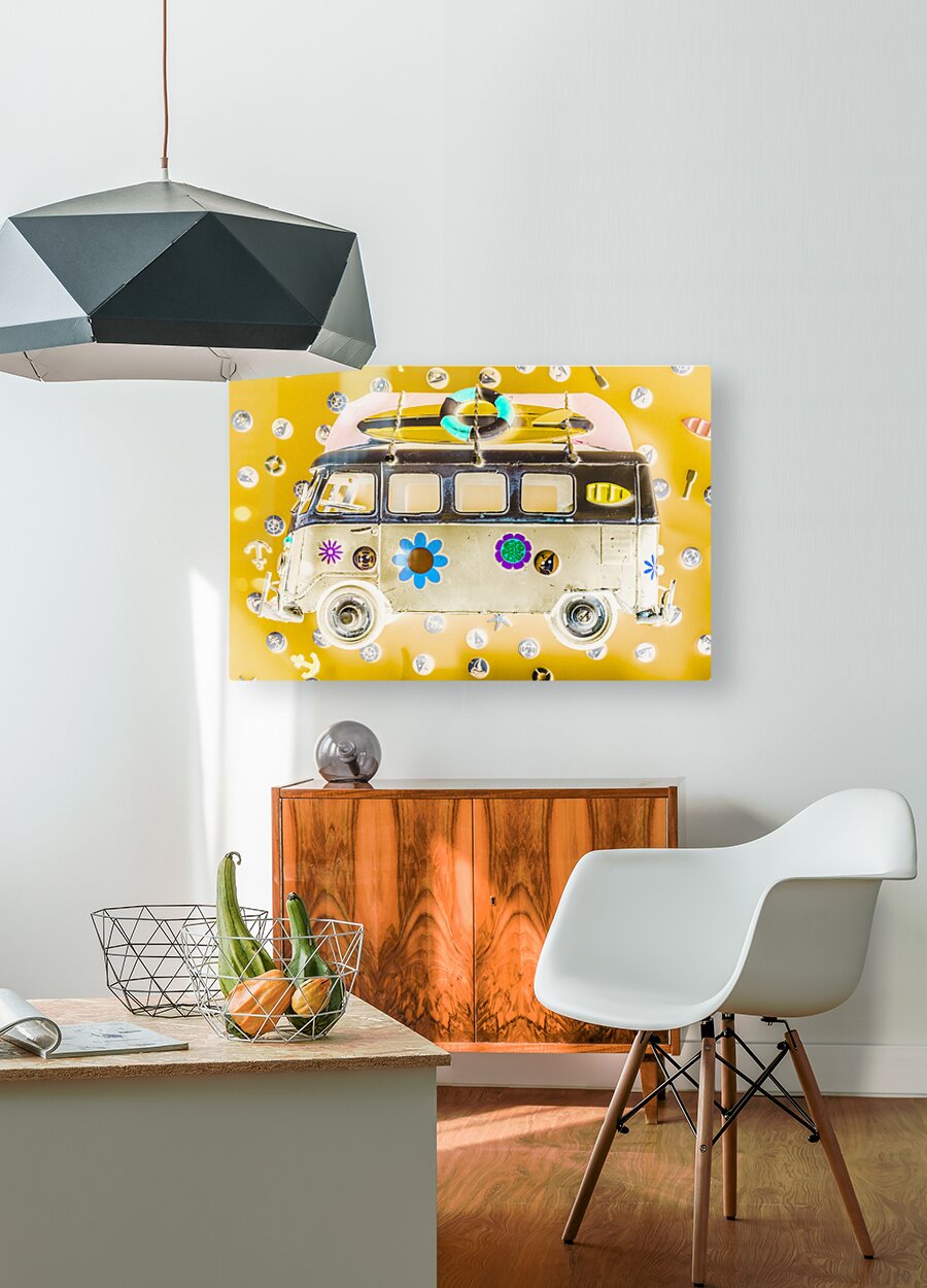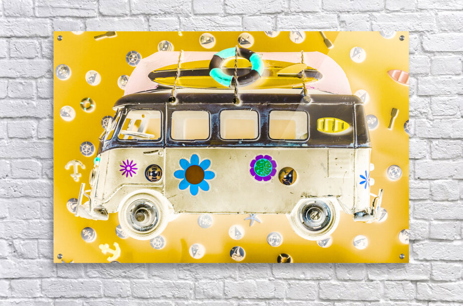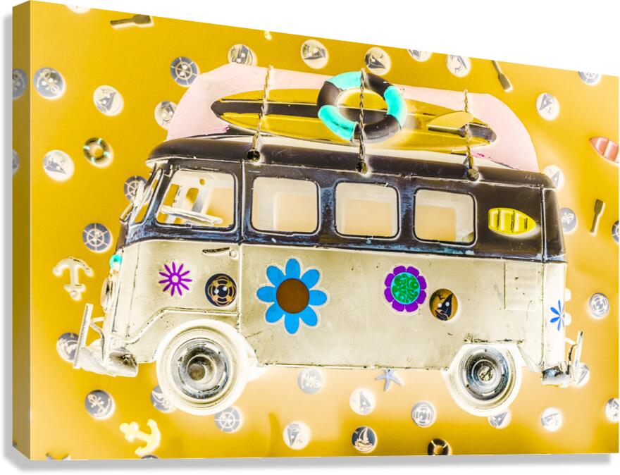 Retro styled inverse artwork on a psychedelic ocean trip to adventuring summers wayback. Bus Pops