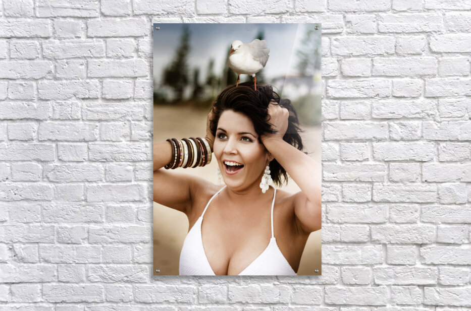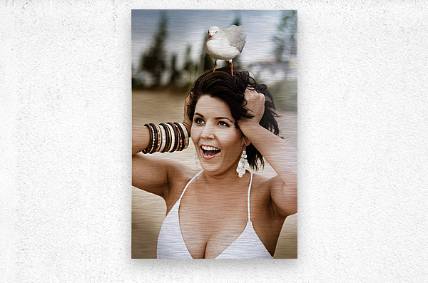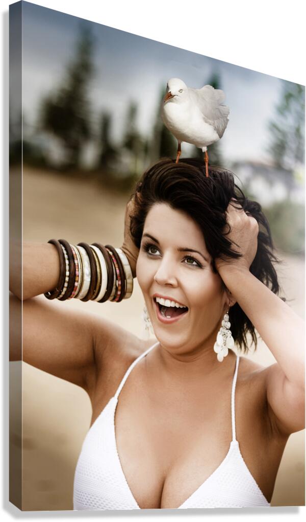 Surprised Bemused And Frightened Beach Going Woman Is Stunned And Shocked When A Seagull Is Perched On Her Head In A Funny Outdoor Portrait Of Humor
