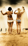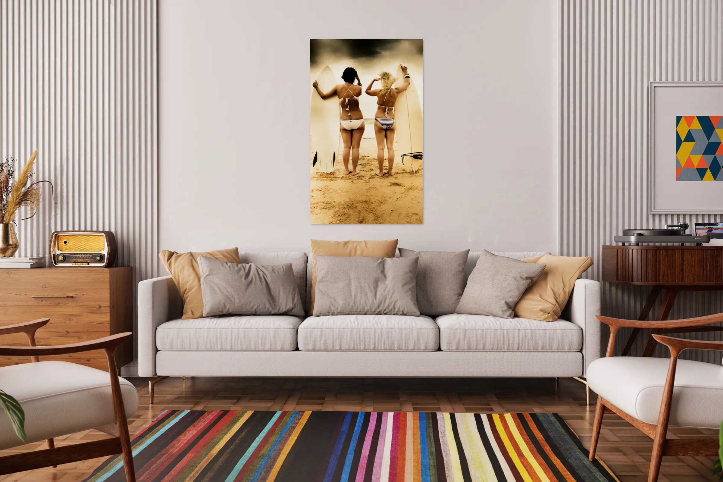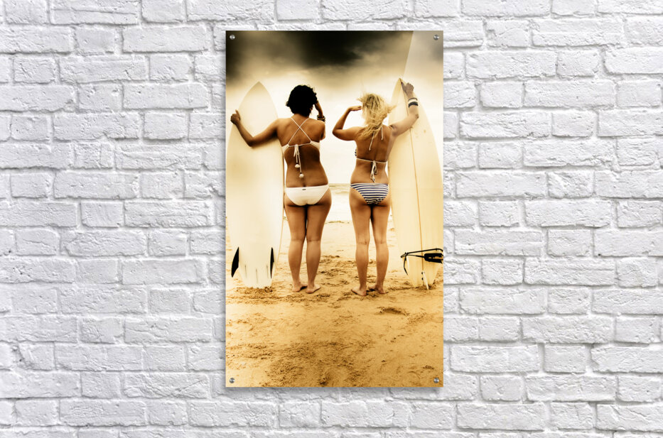 Surfing Image Of Two Sporty And Sexy Surfers Holding On To Surfboards Outdoors In A Cool Classic And Retro Stylized Surf Sport Image