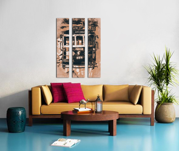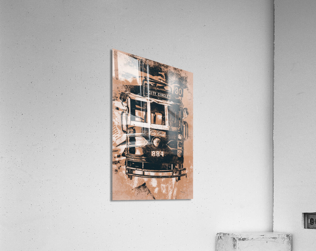 Weatherly wash of old rustic charm with a gritty City Circle tram in tones of sentiment bygone