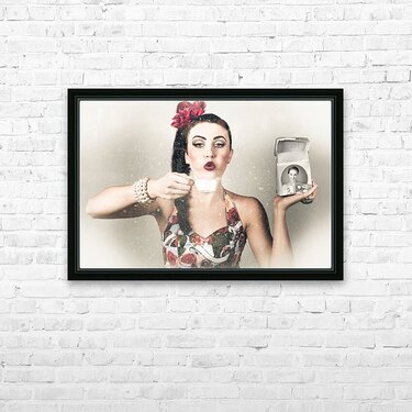 Retro pin up poster girl. Wash and clean service Picture Frame Printing