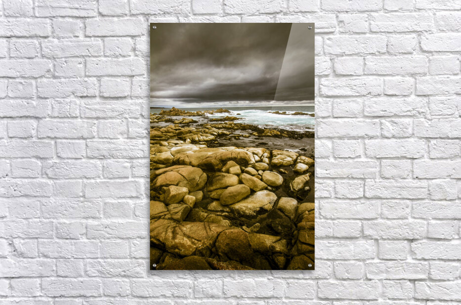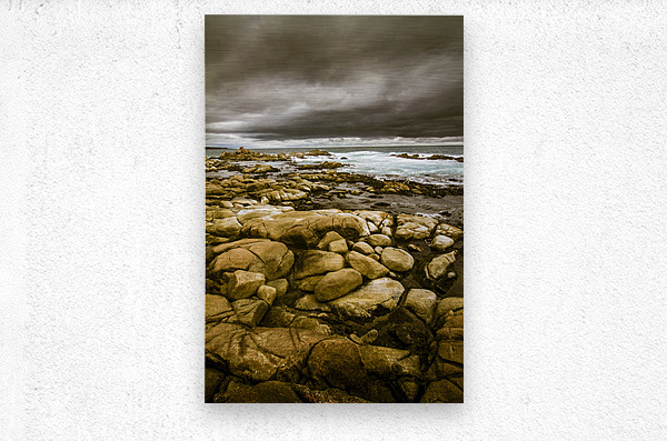 Rocky beach under dark clouds at Granville Harbour Tasmania Australia