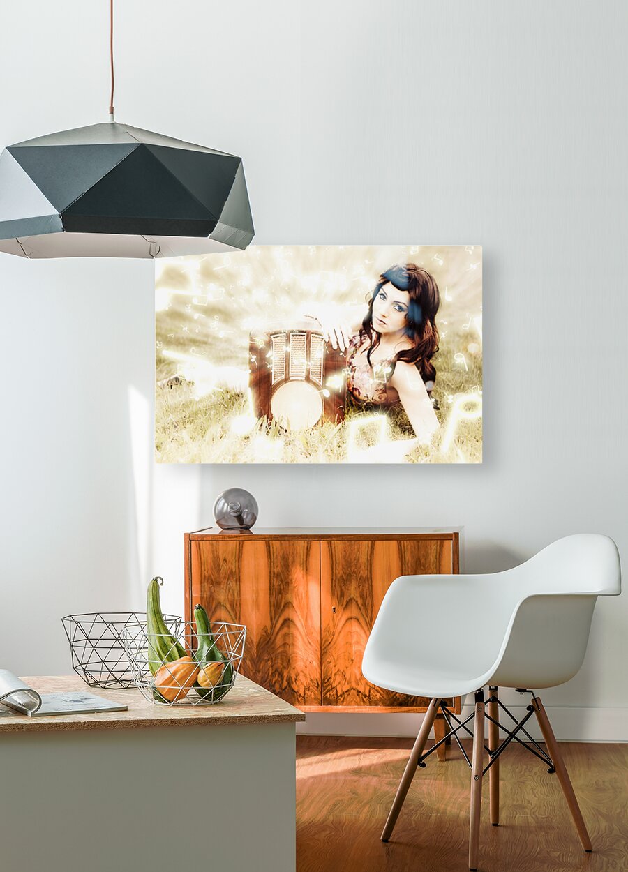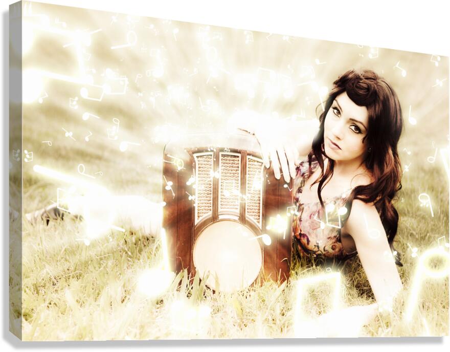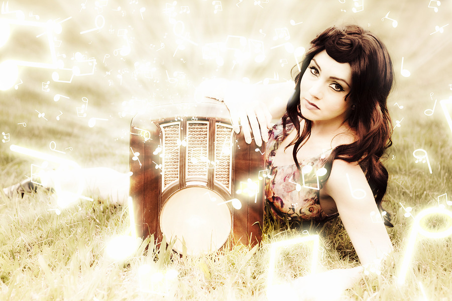 Abstract Art Design Image Of Rhythm Rhyme And Song As Magic Glowing Music Notes Flow From A Old Radio In A Image Of Harmony And Musical Melody