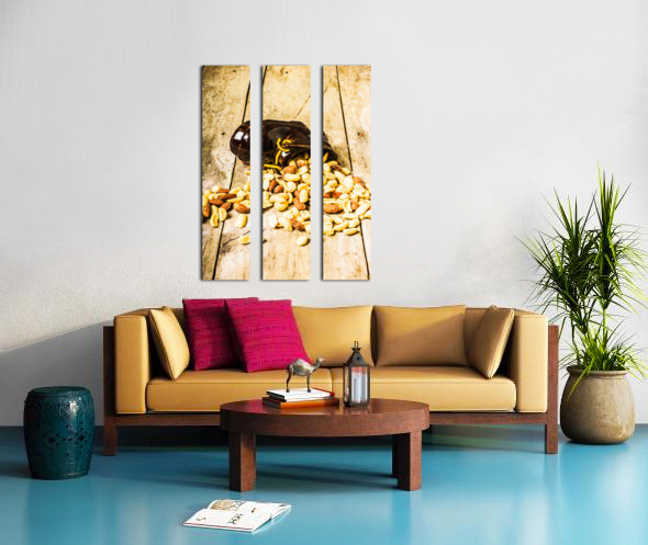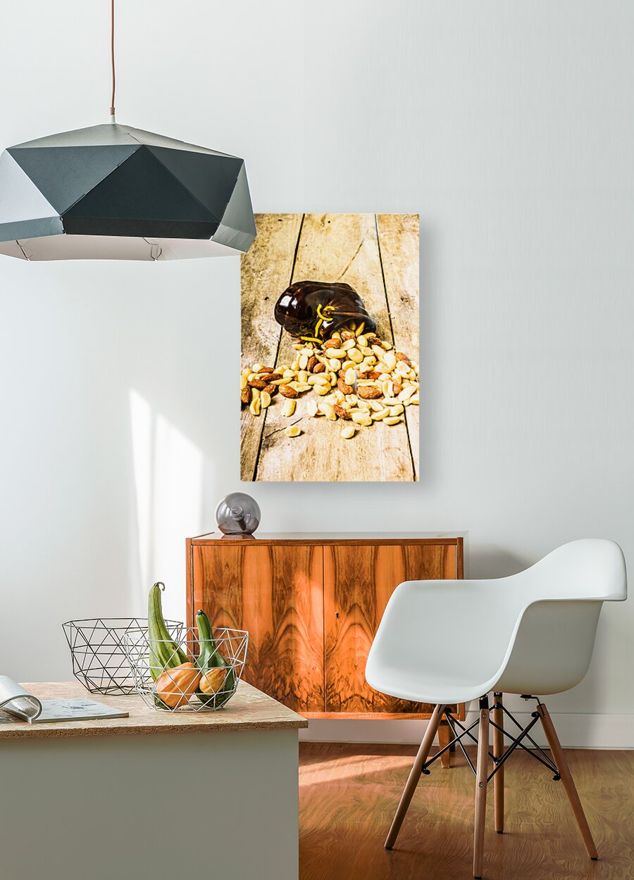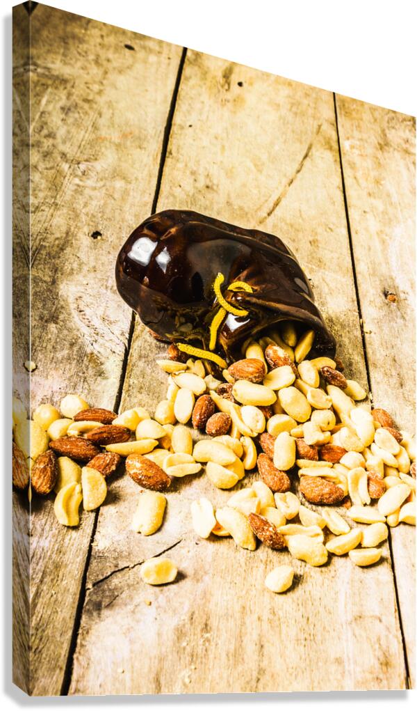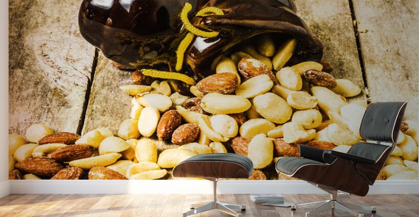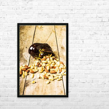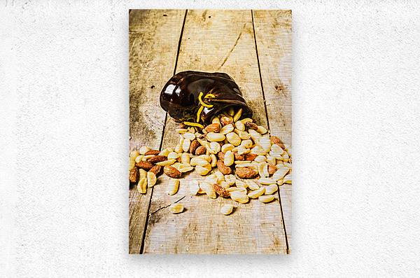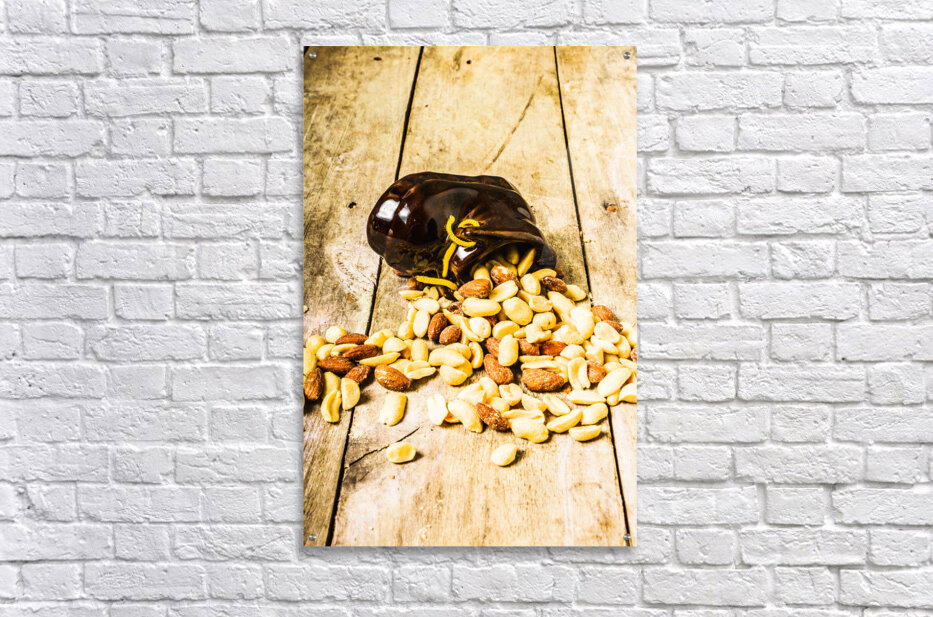 Studio still life spill on shoe serving up a heap of organic nuts. The kitchen boot