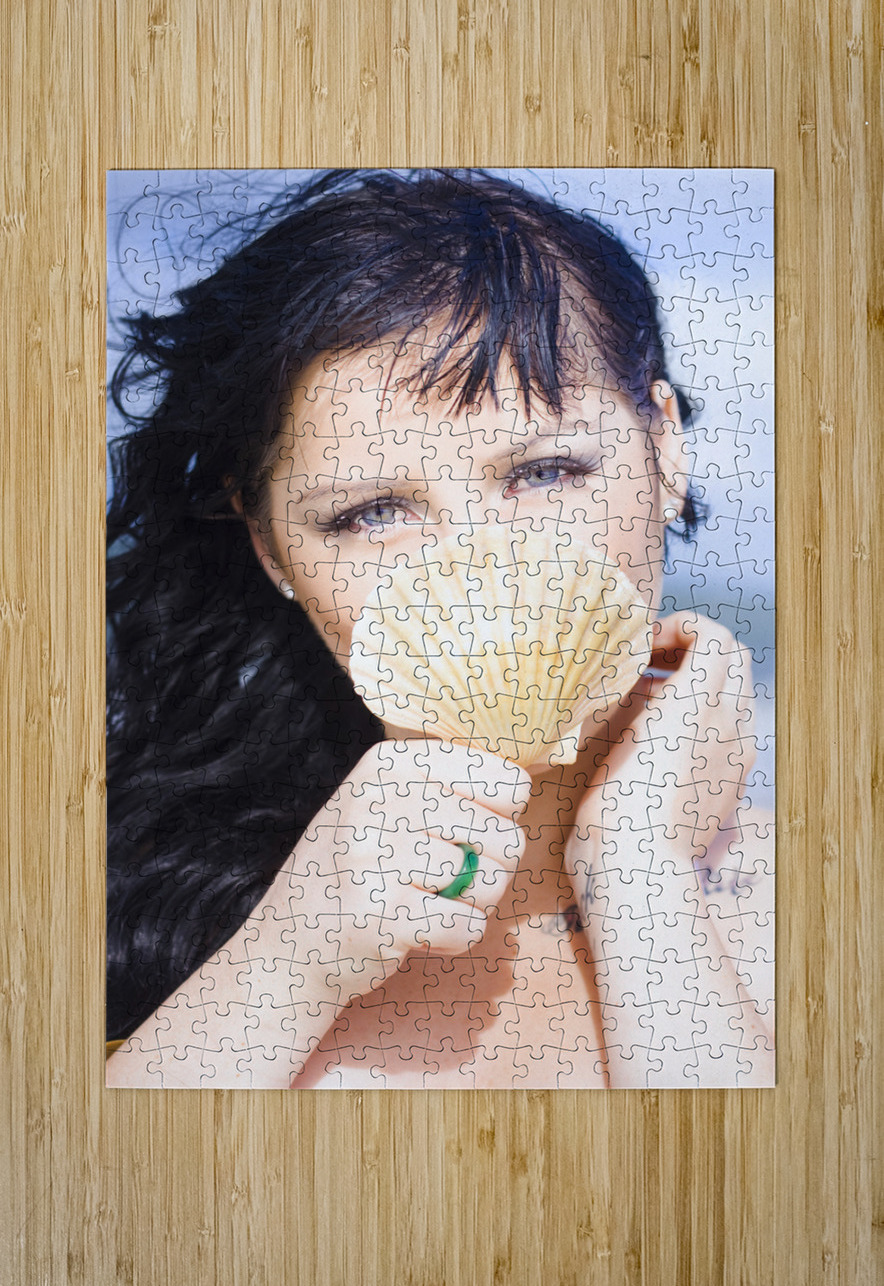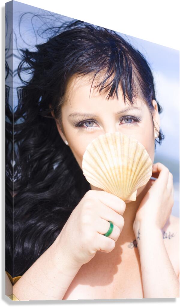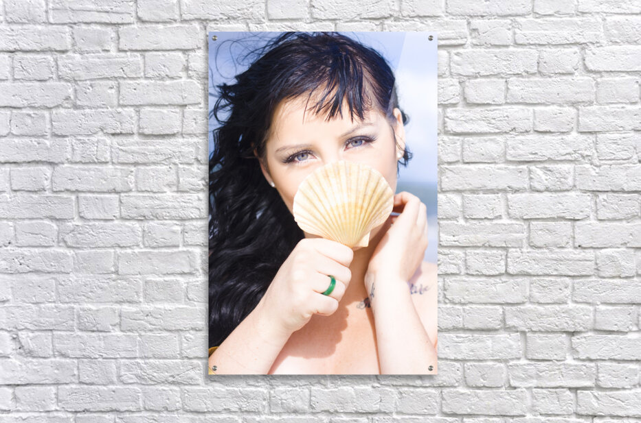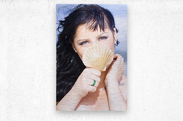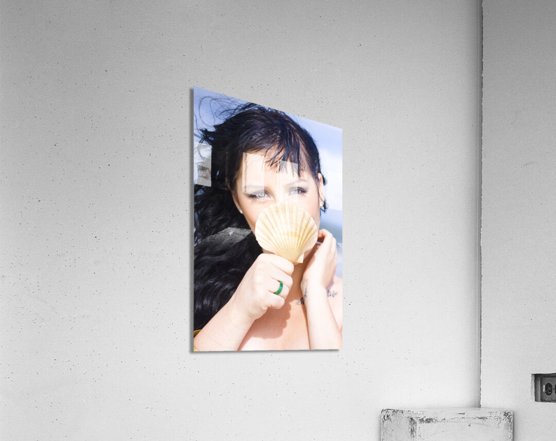 Beautiful Mother Nature Woman Hides Her Face Behind A Cockle Shell In An Outdoor Display Of Pure Harmony In A Life Style Image