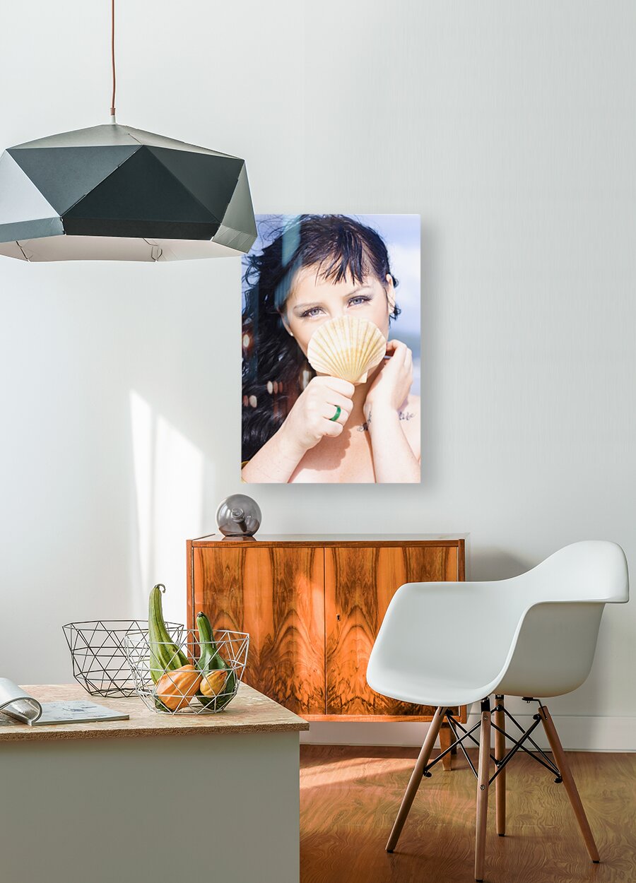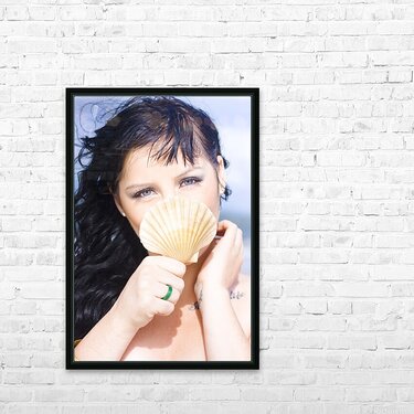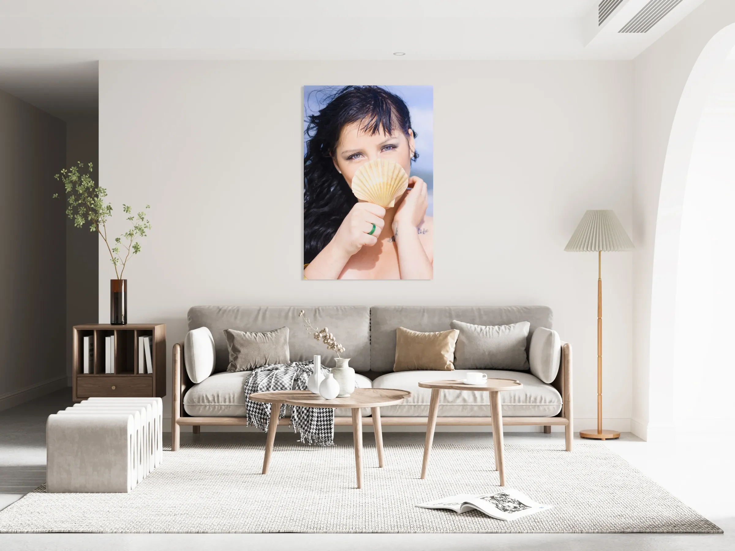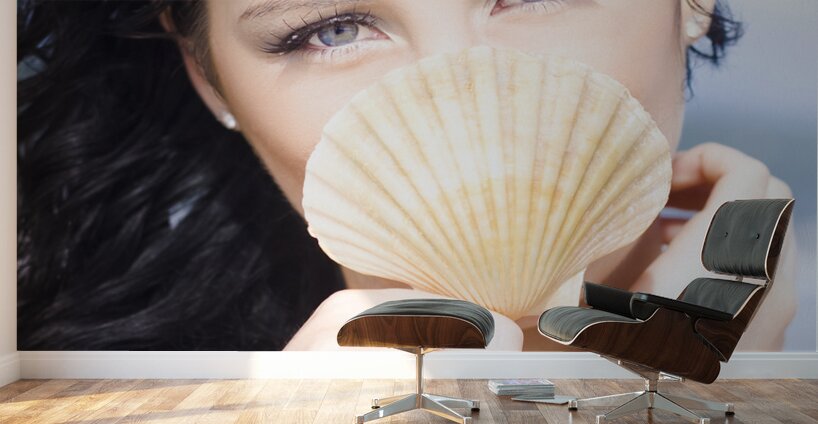 Beautiful Mother Nature Woman Hides Her Face Behind A Cockle Shell In An Outdoor Display Of Pure Harmony In A Life Style Image