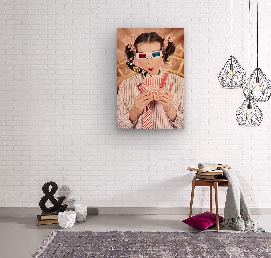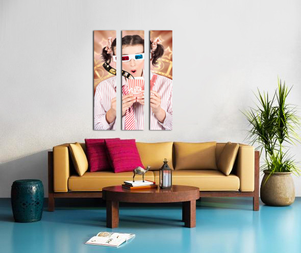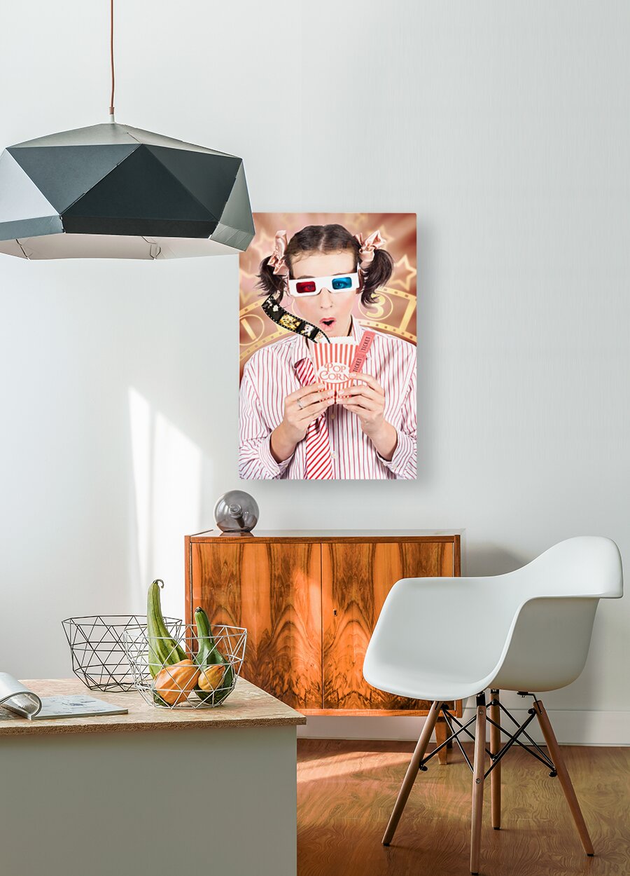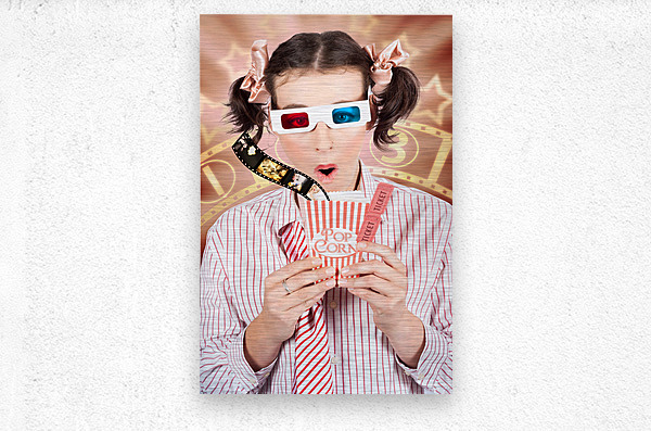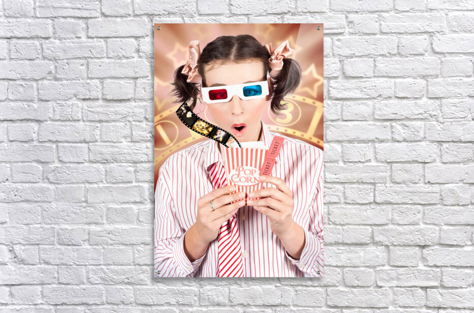 Get this artwork "Funny Girl Watching 3D Movie At Cinema" in a framed print.