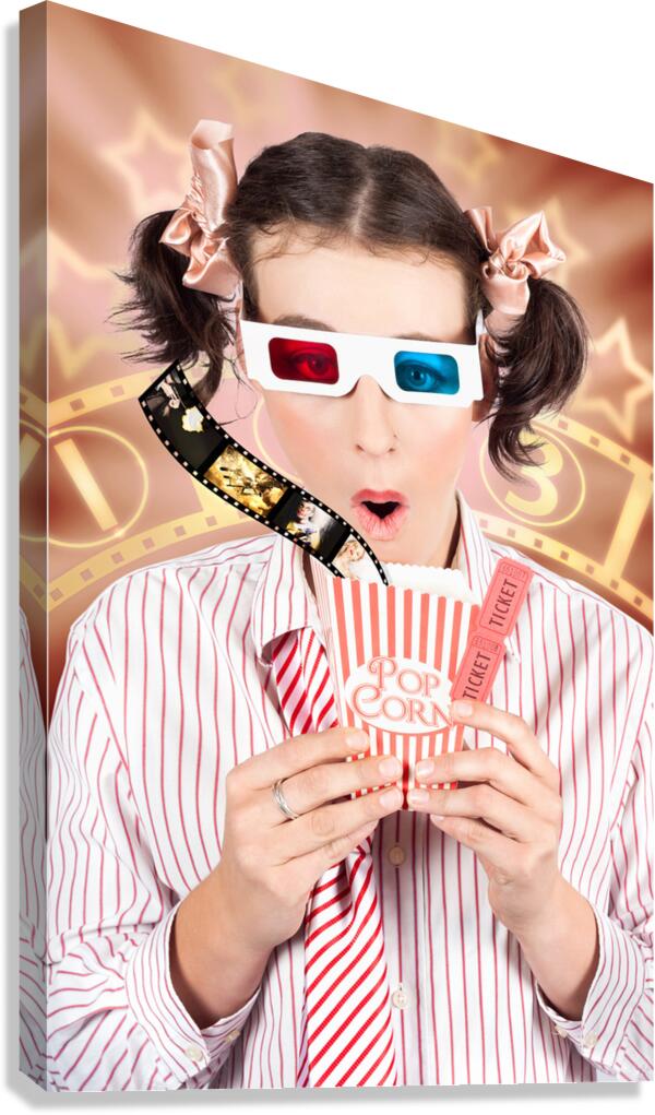 ABOUT THIS ARTWORK: FUNNY GIRL WATCHING 3D MOVIE AT CINEMA