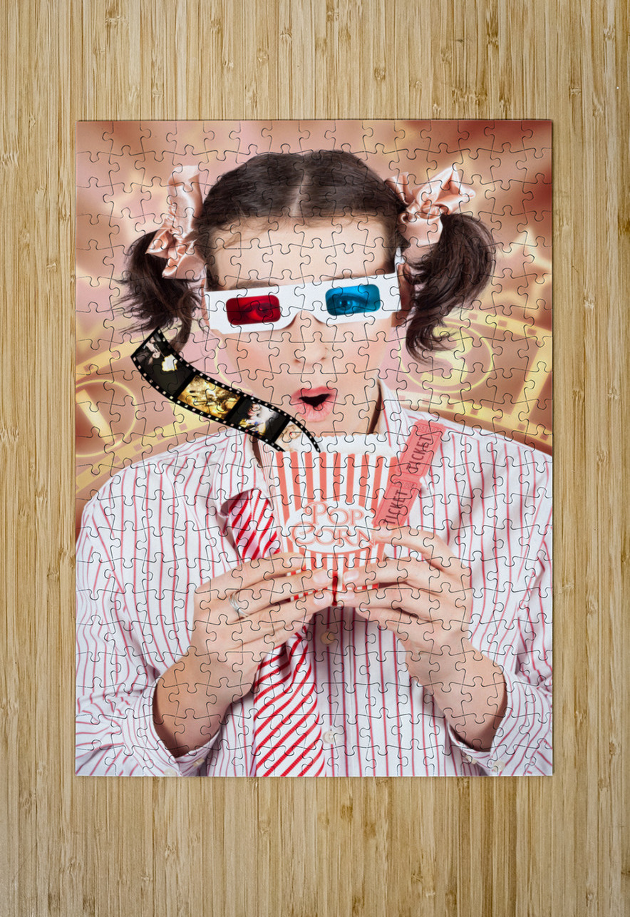 Funny Girl Watching 3D Movie At Cinema Jorgo Puzzle printing