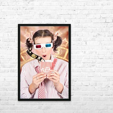 Funny Girl Watching 3D Movie At Cinema Picture Frame Printing