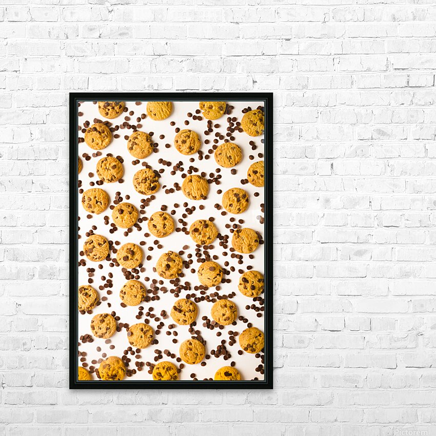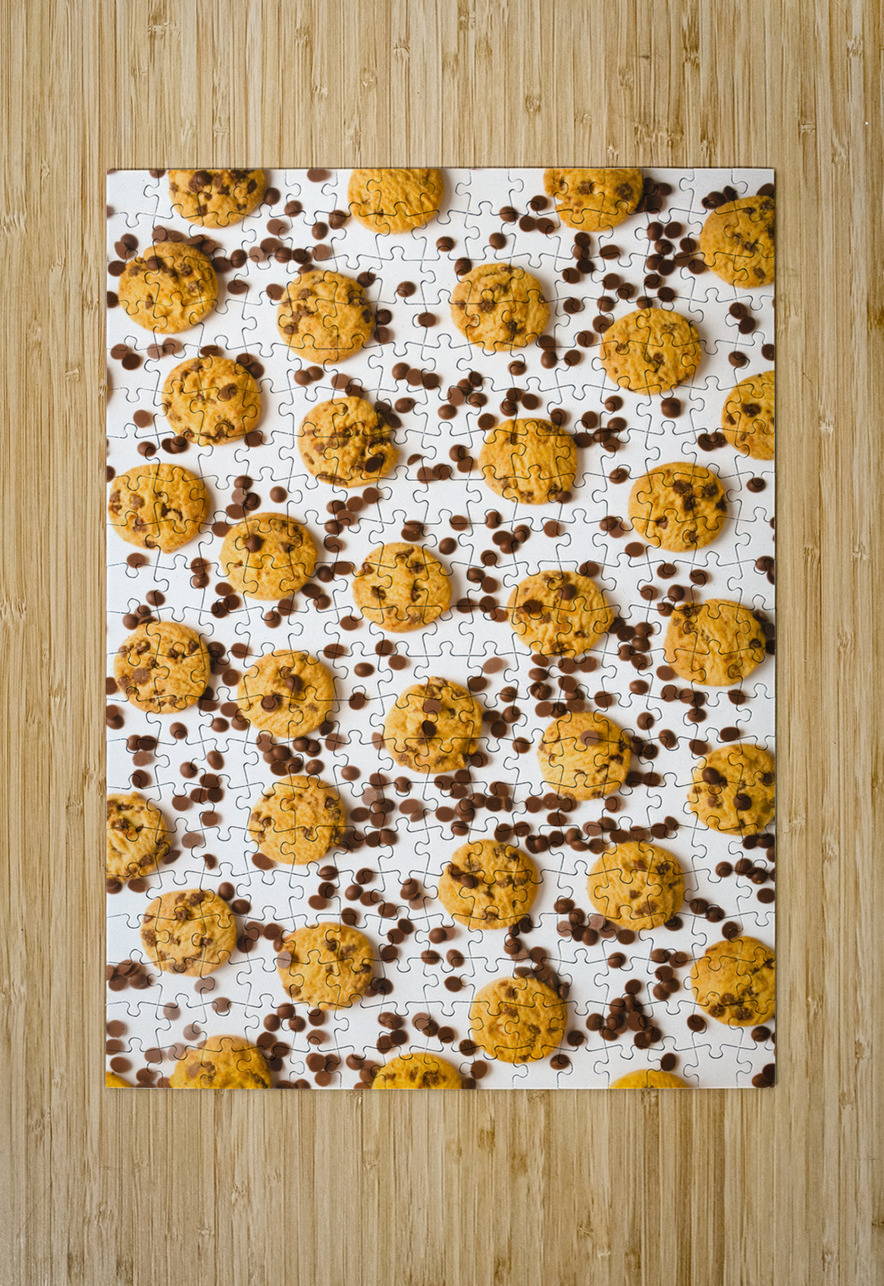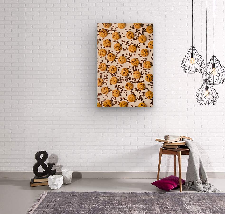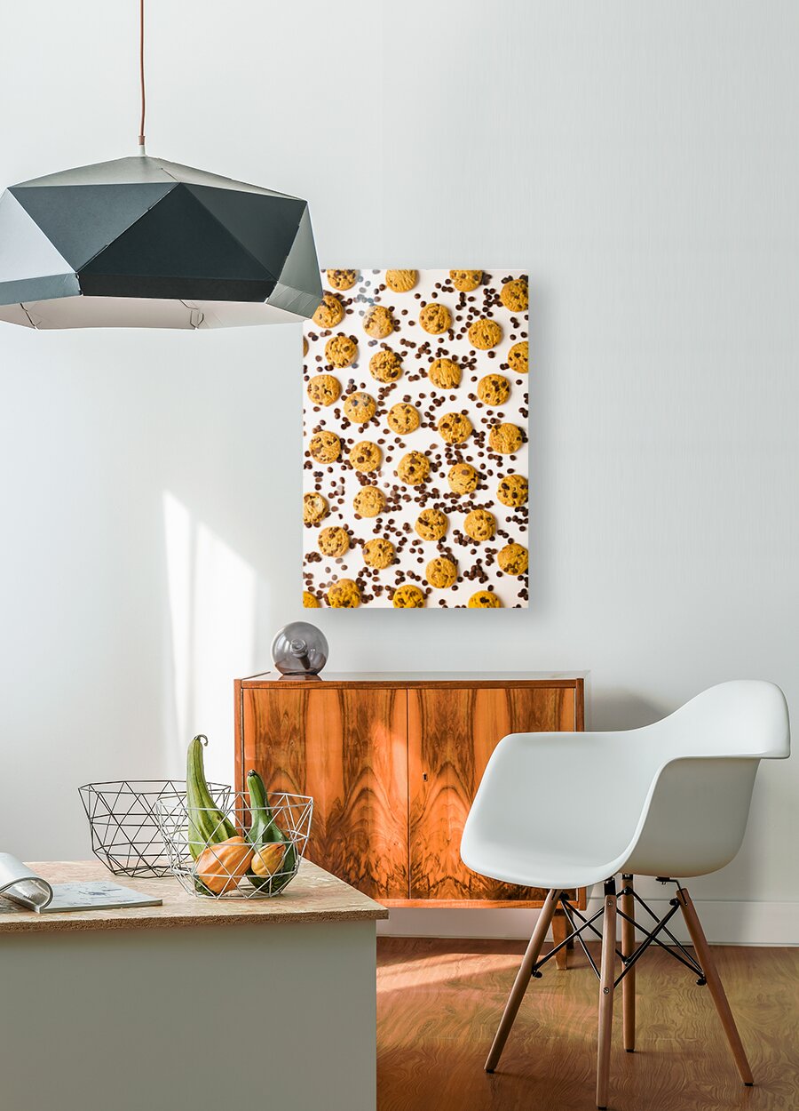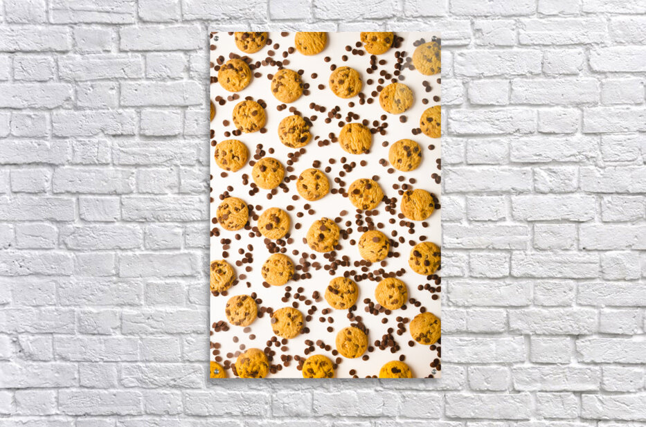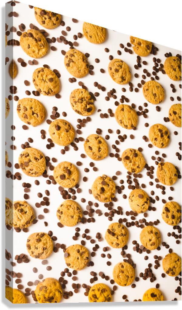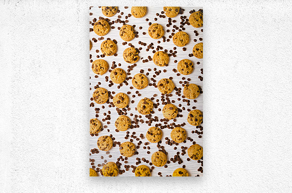 Food fine art on a patterning of chocolate chip cookies in randomised modernism