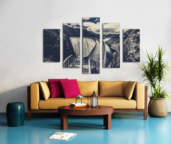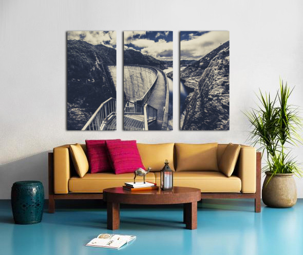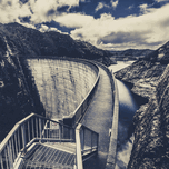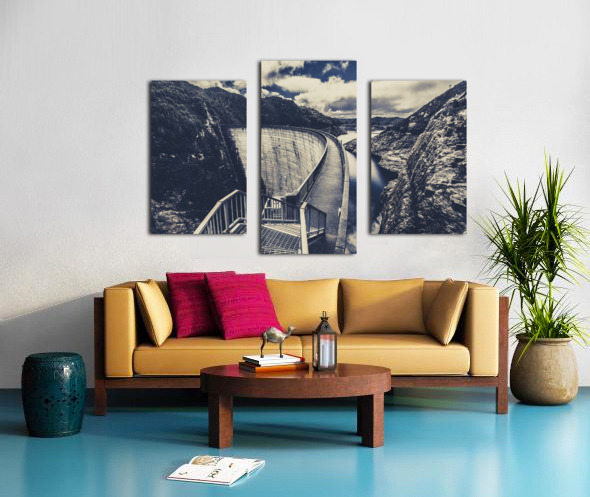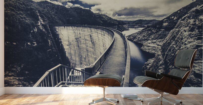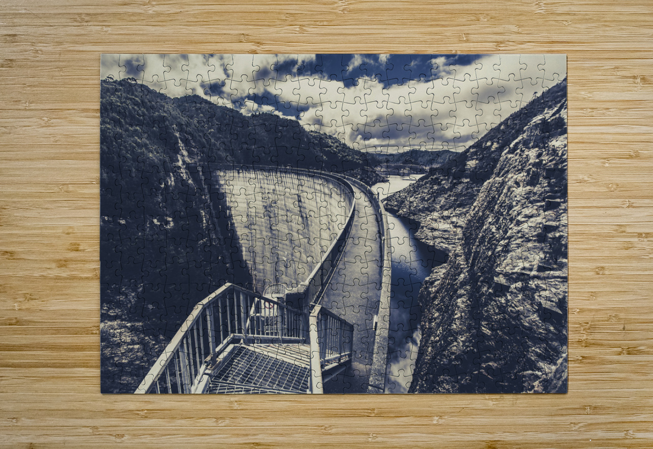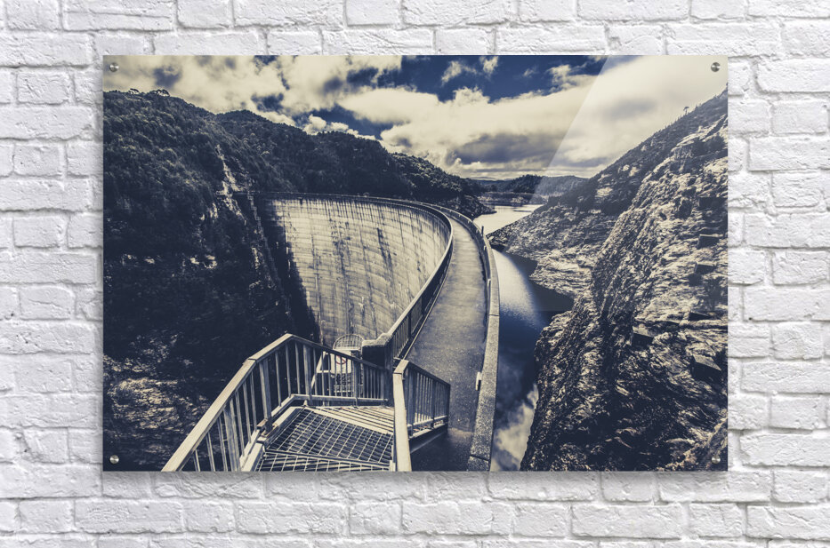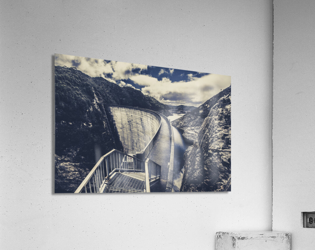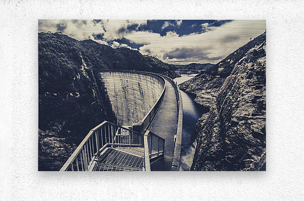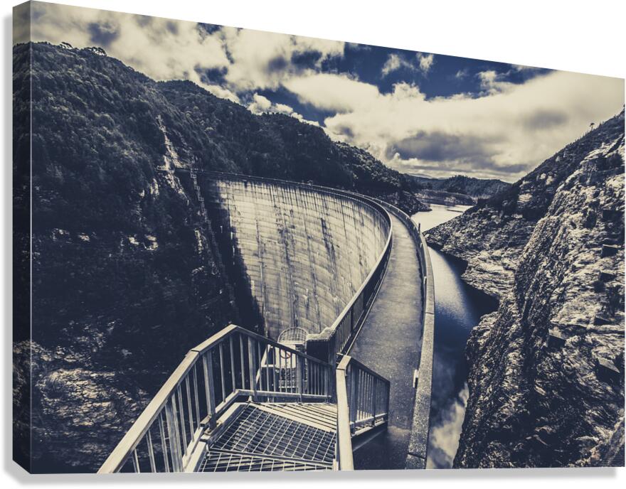 High dynamic range on a blue filtered landscape in hydroelectricity construction. Gordon Dam Southwest Tasmania Australia