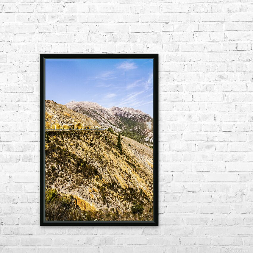 HDR landscape splendour of vibrant road rails traversing colourful stony highlands. Queenstown West Tasmania Australia