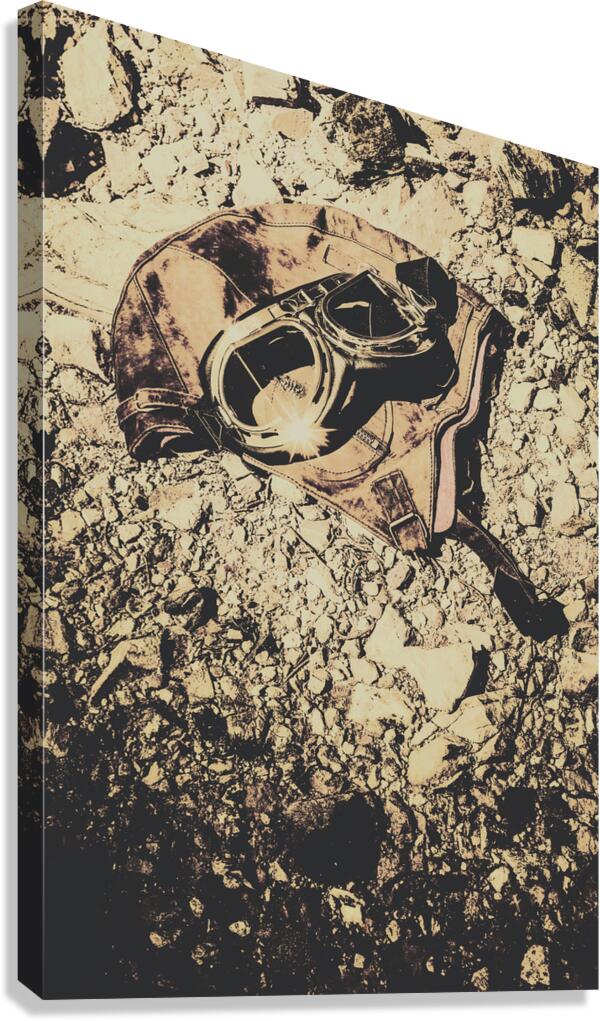 Old historic photograph on an exploration still of rustic flight paths with pilots cap and goggles. Pioneering aviation and travel