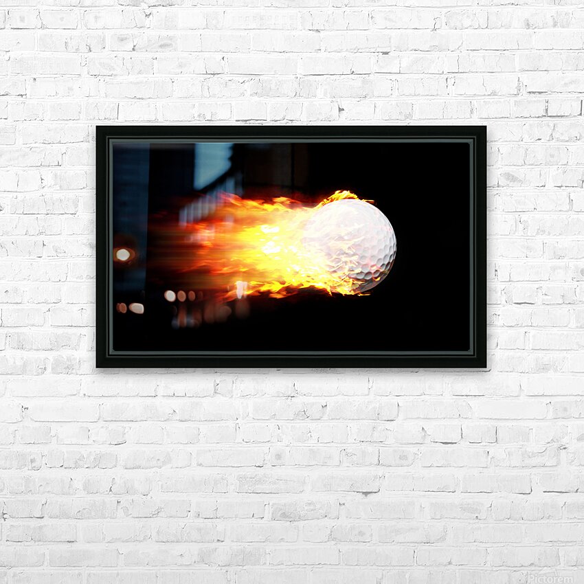 Flying Golf Ball In Motion Shooting Quick In A Fire Ball Or Flame Ball Isolated On Black