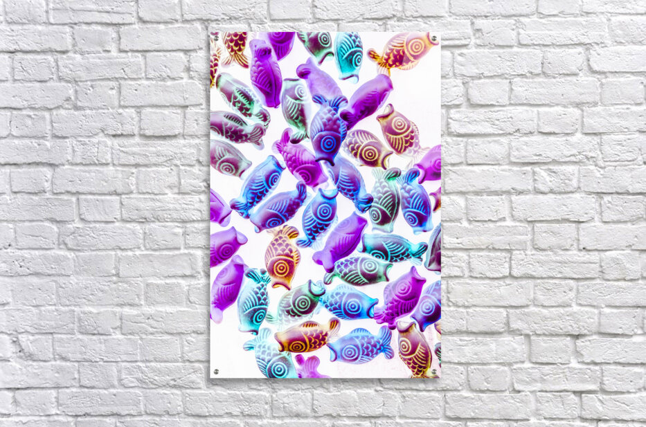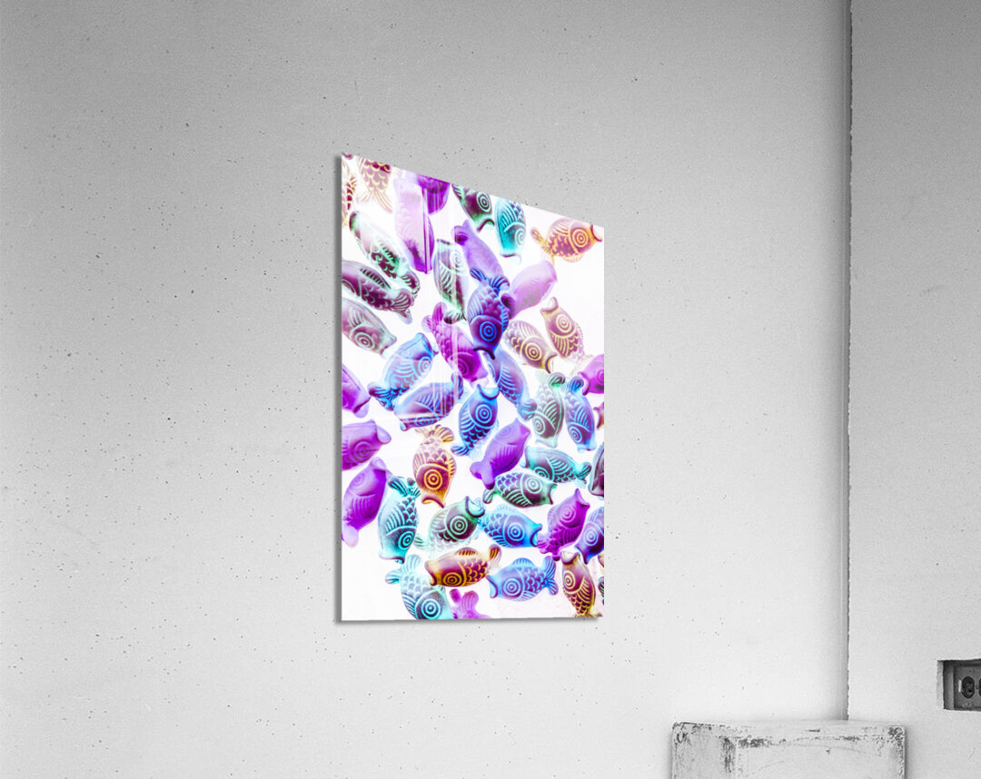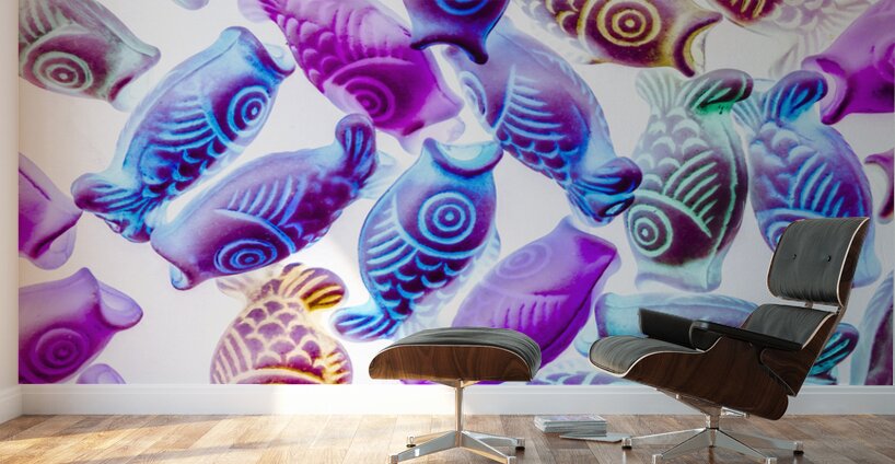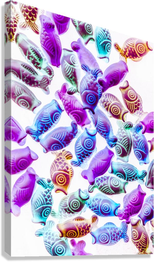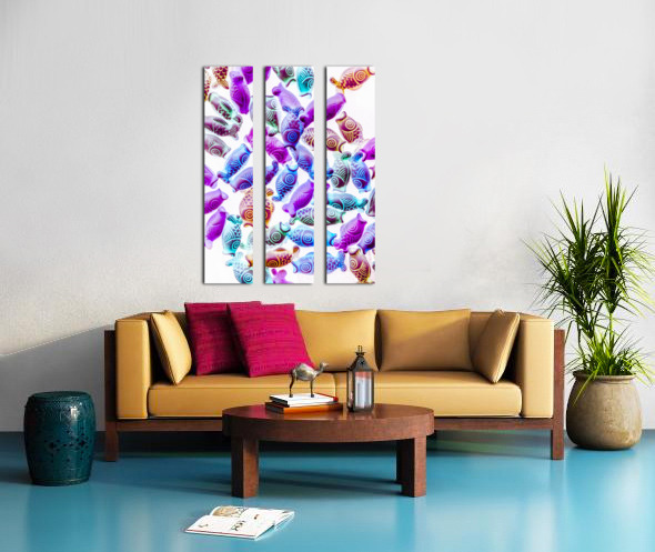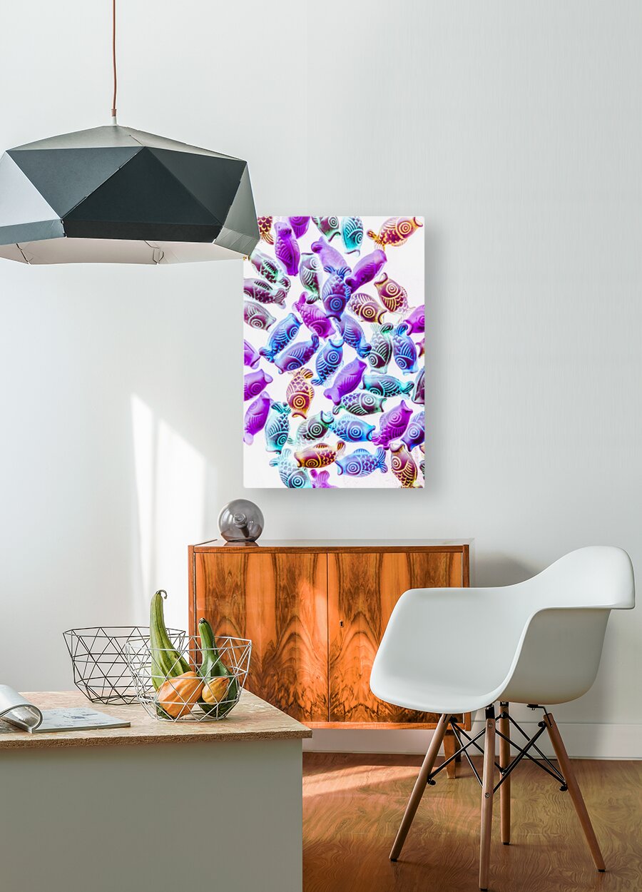 Colorful modern design on a decorative mix of pendent Kois in blues and purples. Pop Koiture