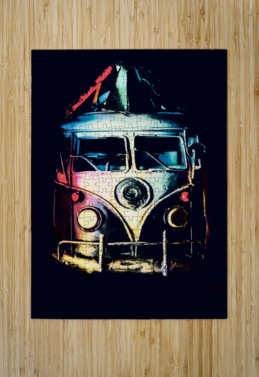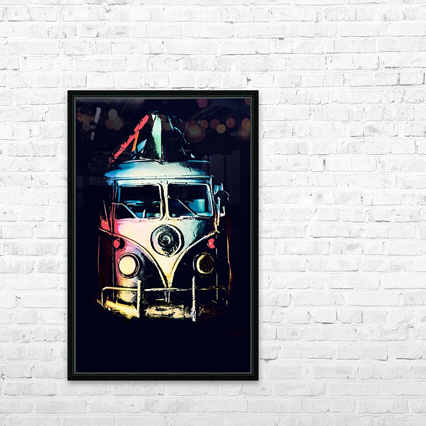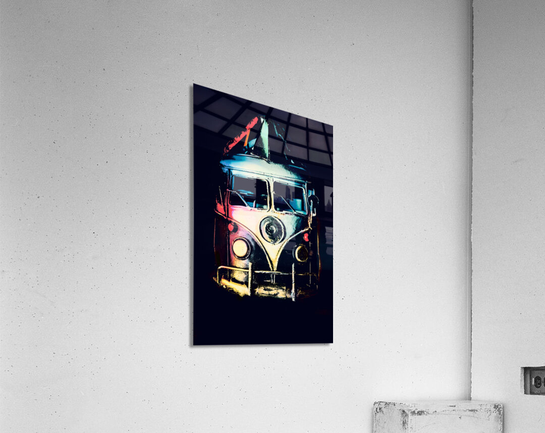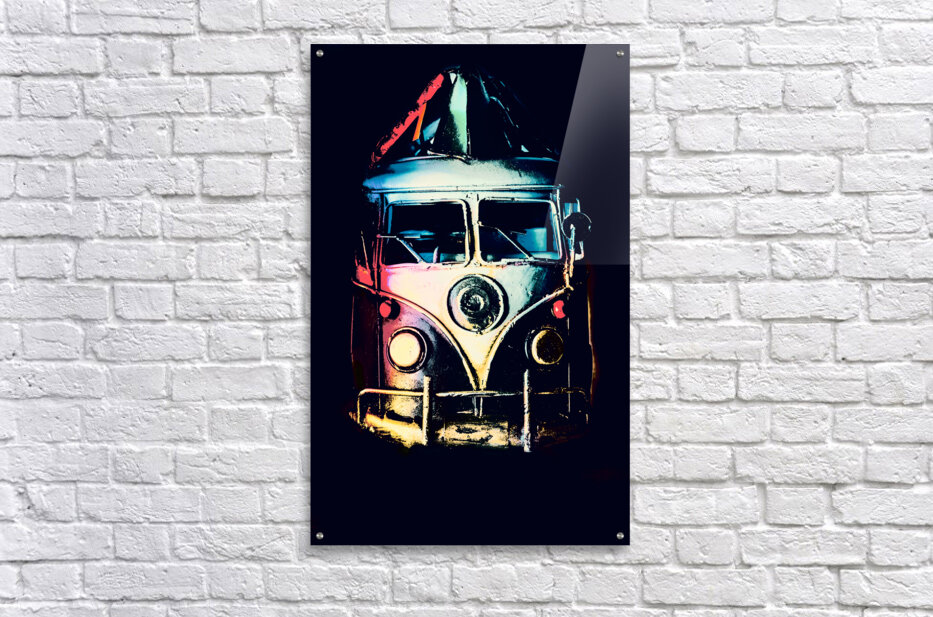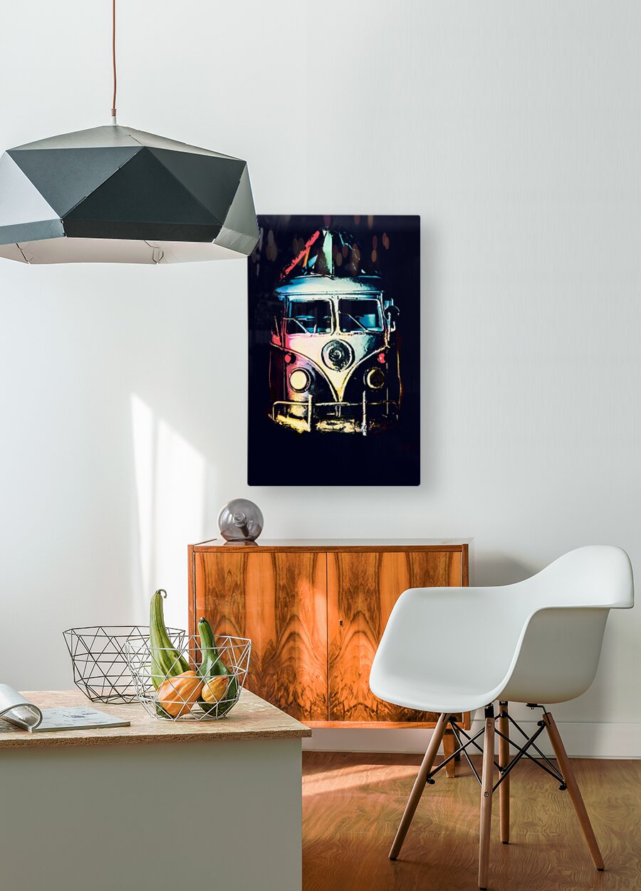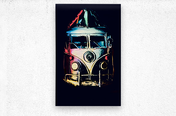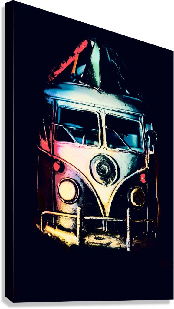 Retro automotive art on a classic 1960s van in midnight shades of multi color. Pop Art Escapade