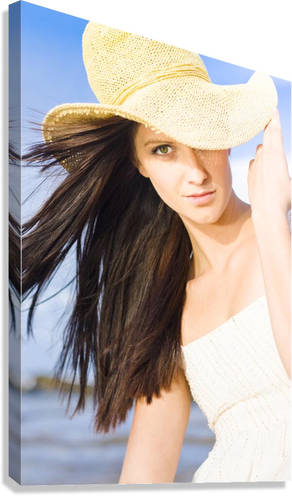 Beautiful Young Summer Beauty Woman Wearing Hat Sea And Blue Sky Background