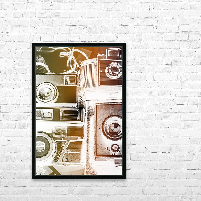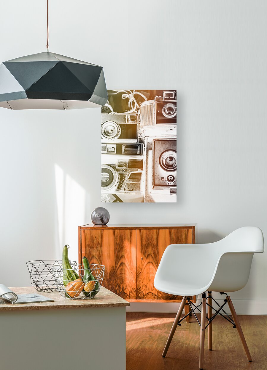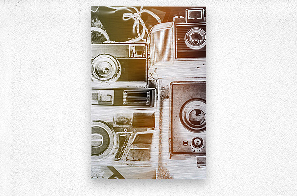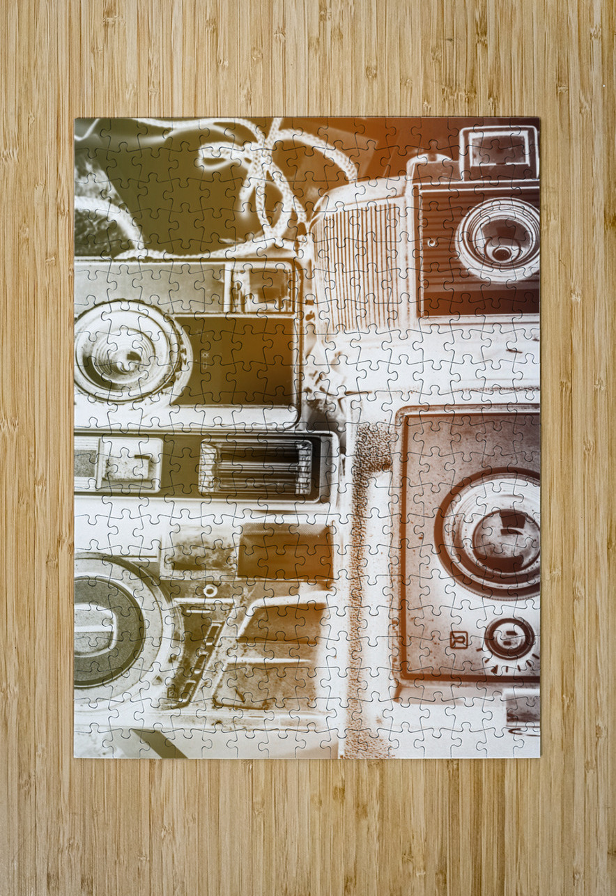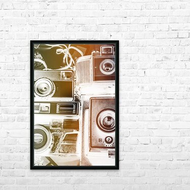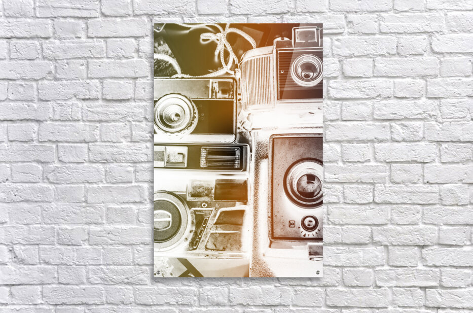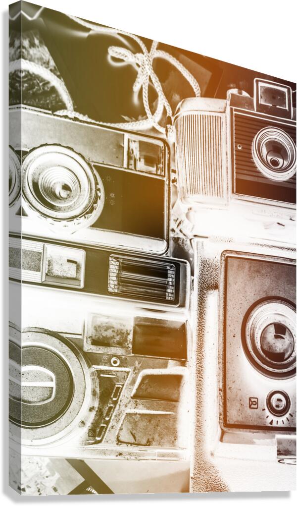 Classical photography details on stacked cameras in dark room film negative. Lomo light leaks