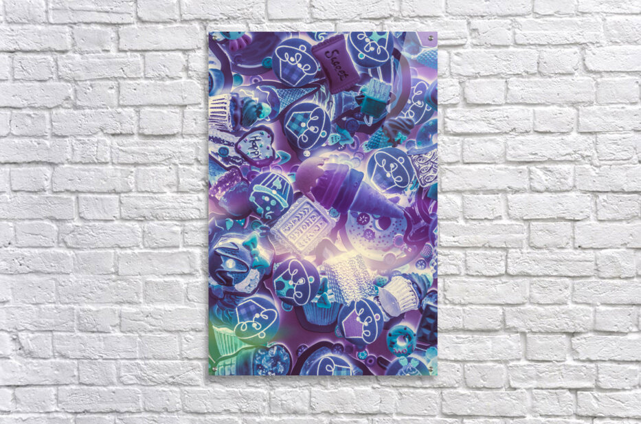 Pop art sweets and treats with candy cones and cup cake bakes in abstract