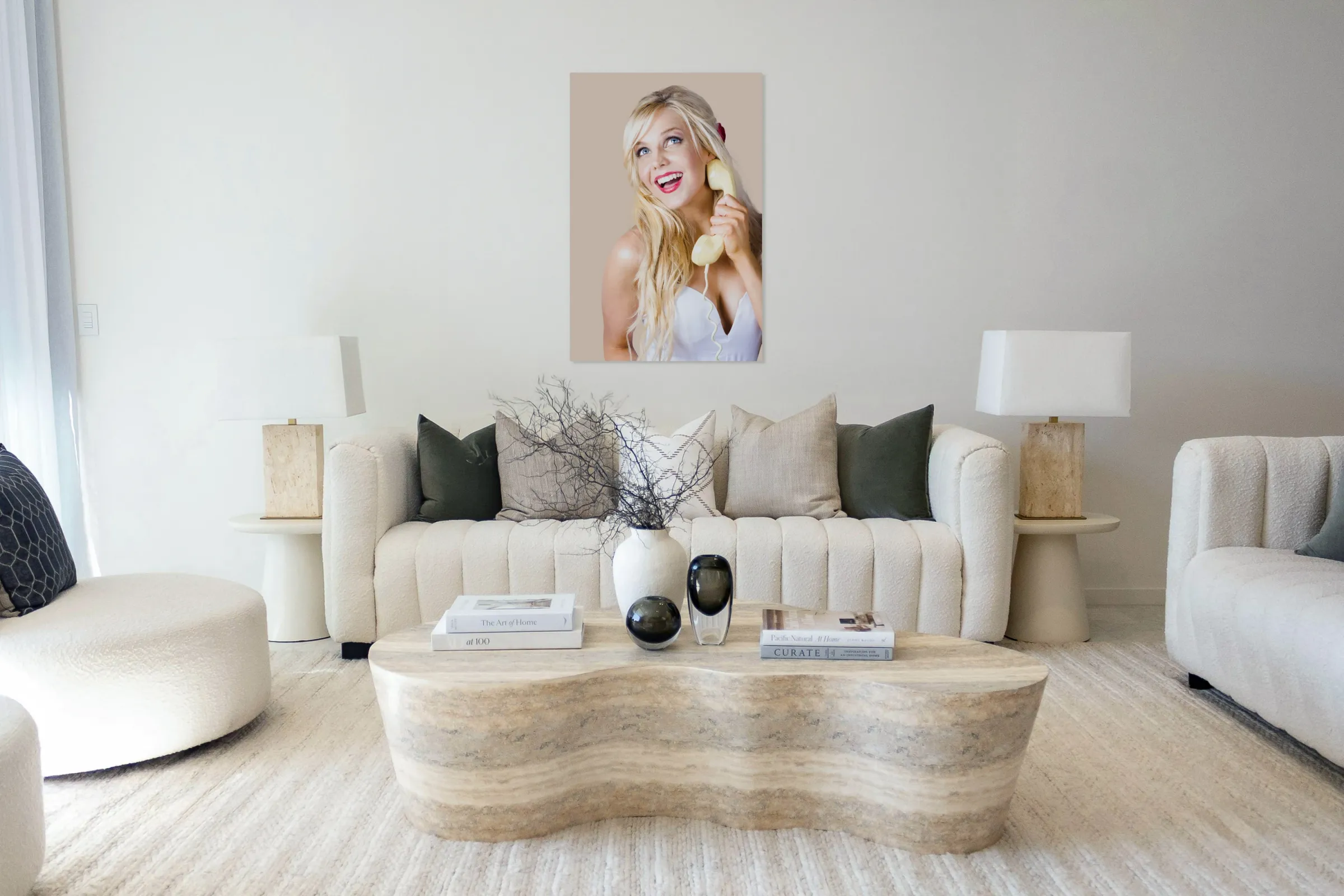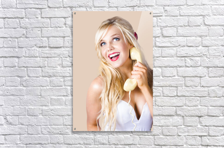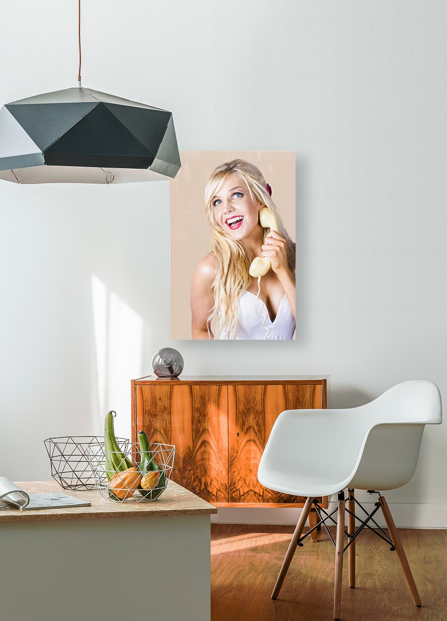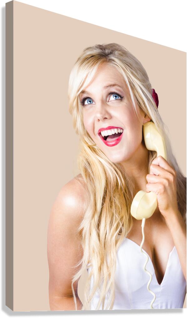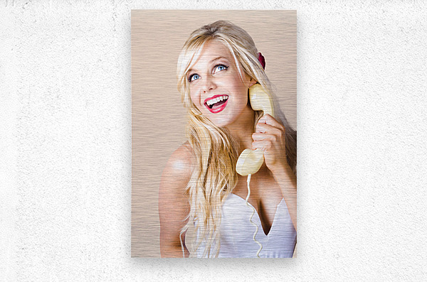 ABOUT THIS ARTWORK: GORGEOUS BLOND WOMAN LAUGHING ON TELEPHONE CALL