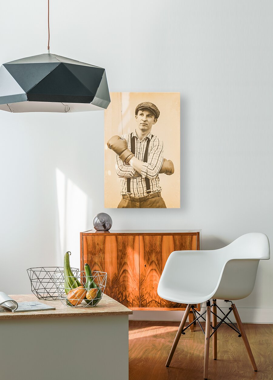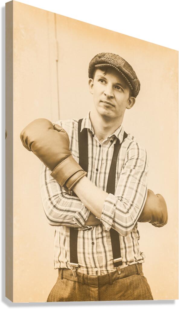 Hard gritty grunge toned photo on a boxer ready to fight in a bygone battle of British pride. Battle hardened