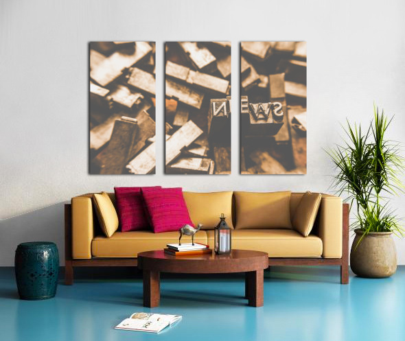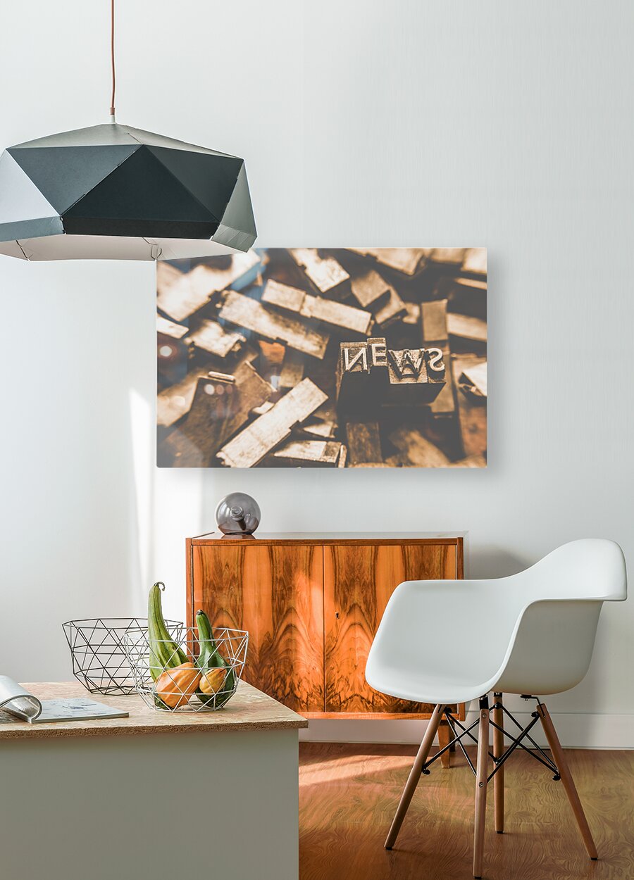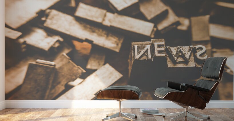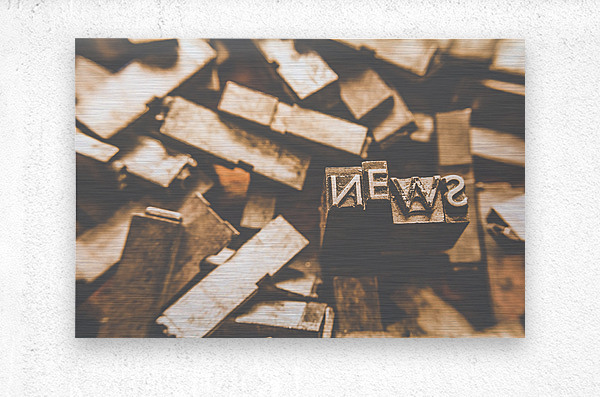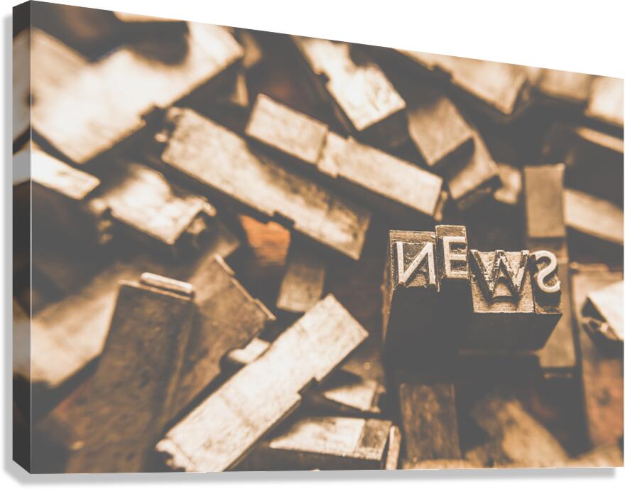 Retro news print still life artwork on printers typeset blocks articulating news communications